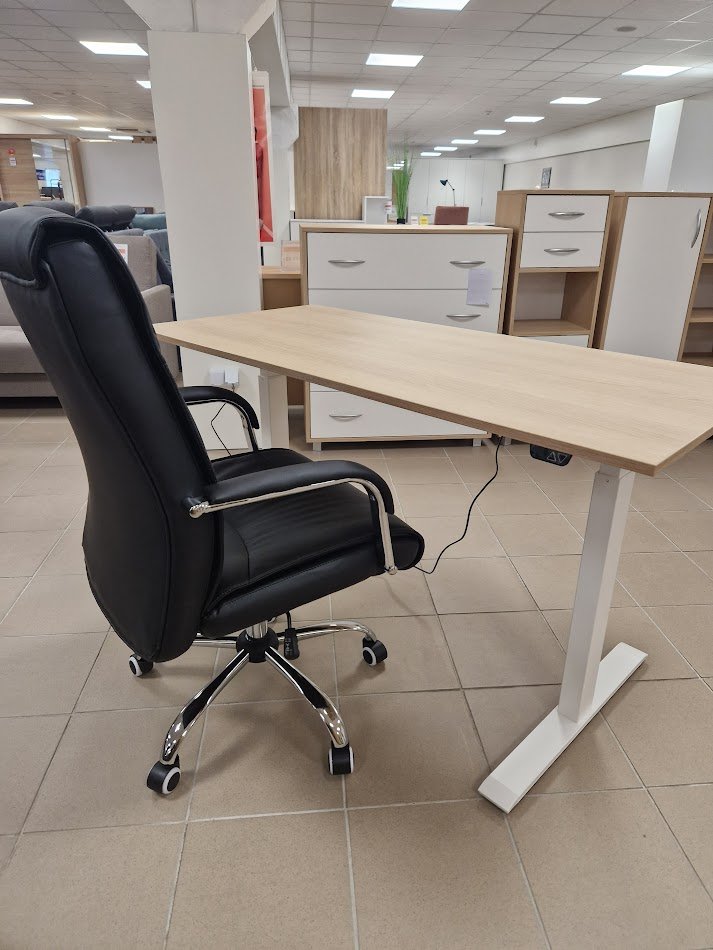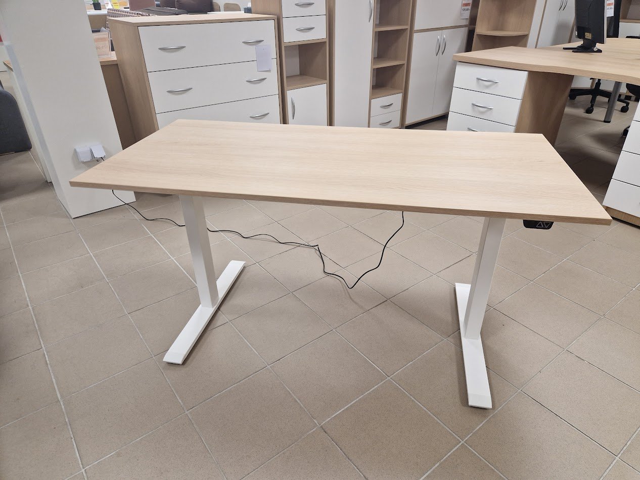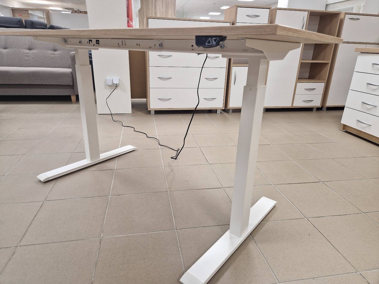 Tai išmanus Lietuvių gamybos darbo stalas. Aukštis reguliuojasi elektra, vieno mygtuko paspaudimu. Užsakant stalą, parašykite norimus matmenis, standartinių matmenų jis neturi. Stalo plotis gali būti 100-160 cm., gylis 70-80 cm, aukštis reguliuojasi 69-119 cm. Kojų spalva: balta, sidabrinė, juoda. Dydžiai, spalvos (mūsų standartinės) pasirenkami, o kaina galioja viena ,visiems išmatavimams- 455 Eur. Jei pageidaujama apvalinti kampus + 30 eur