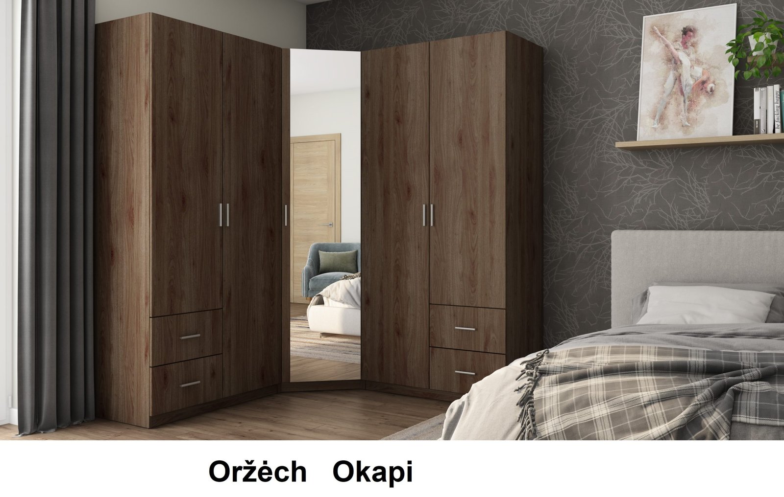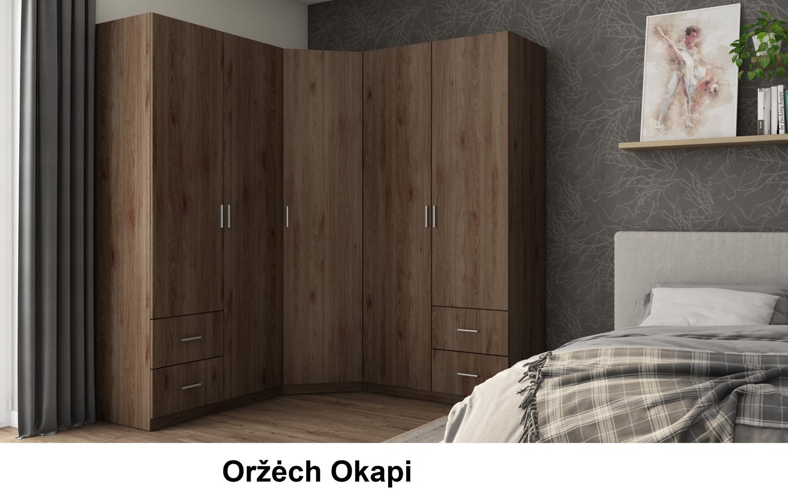 • Galinės sienelės iš lentos vienpusis laminuotas HDF (baldo korpuso spalvos), 3 mm storio. Modelis turi 3 atskirus segmentus kurie sukuria solidžią drabužių spintą, tačiau prireikus gali stovėti ir atskirai. Kiekvienas segmentas  individualus ,tai  galite sutalpinti viską ir visiškai išnaudoti visas drabužių spintos erdves. Be to, komplekte yra 4 išoriniai stalčiai!