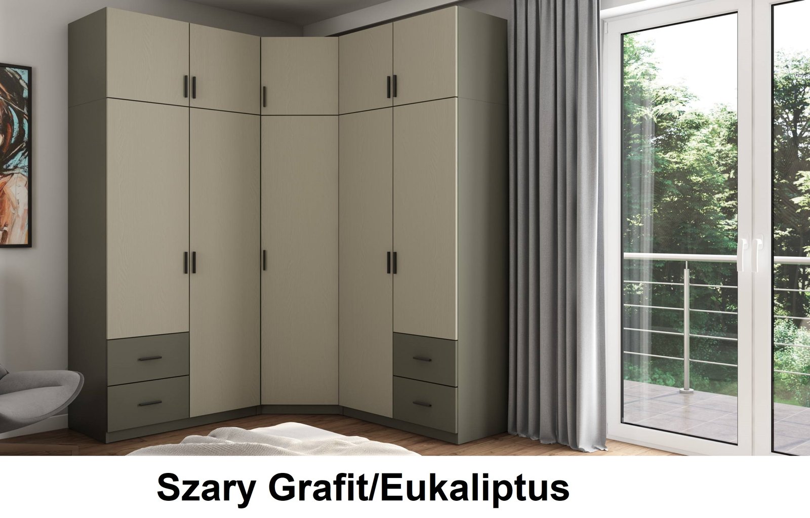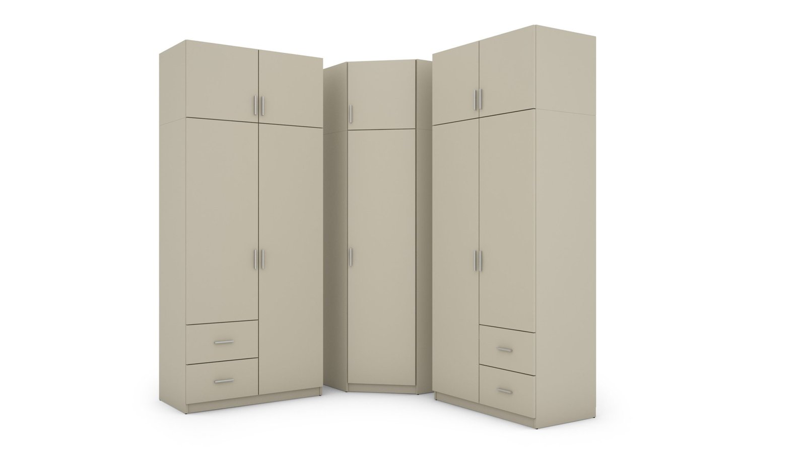 - Galinės sienelės iš lentos vienpusis laminuotas HDF (baldo korpuso spalvos), 3 mm storio. Modelis turi 3 atskirus segmentus kurie sukuria solidžią drabužių spintą, tačiau prireikus gali stovėti ir atskirai. Kiekvienas segmentas individualus ,tai galite sutalpinti viską ir visiškai išnaudoti visas drabužių spintos erdves. Be to, komplekte yra 4 išoriniai stalčiai!