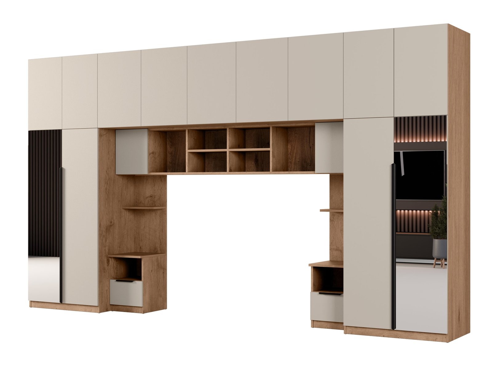 Baldai pagaminti iš aukščiausios kokybės, 18 mm storio, dvipusės laminuotos „Woodeco“ (anksčiau „Pfleiderer“) plokštės.Visi elementai, įskaitant ir apatinę pusę prie grindų, yra klijuoti itin patvariu 0,8 mm storio PVC kraštu. Tai suteikia papildomą apsaugą nuo drėgmės valant grindis. Galinės sienelės pagamintos iš 3 mm storio HDF plokštės, viena pusė lakuota (spalva, panaši į baldo korpuso). Ši parinktis suteikia galimybę rinktis standartinę arba aukščiausios kokybės furnitūrą. Kaina nurodyta be veidrodžių. Spalva: Dab lancelot – kaszmirowy bez
