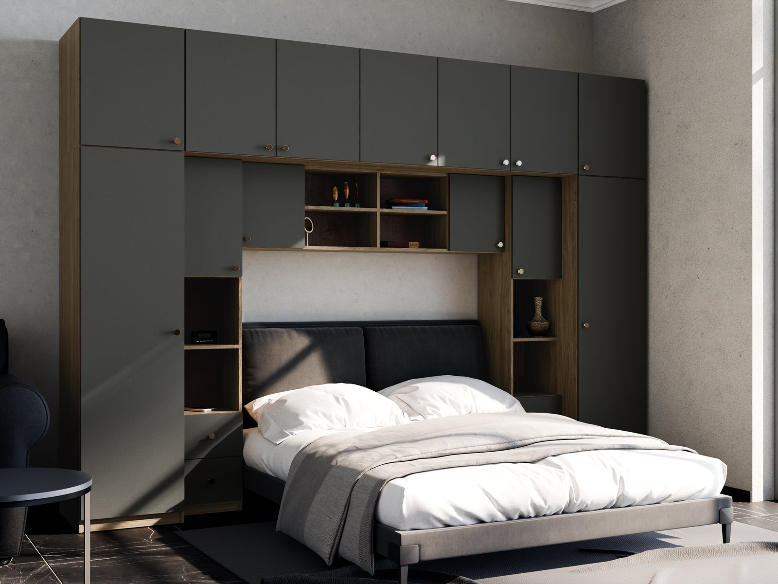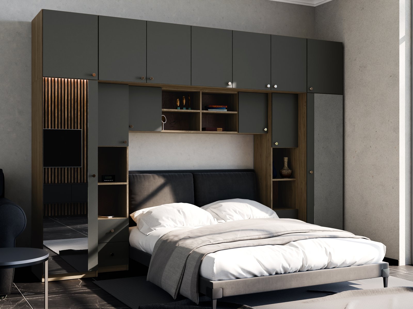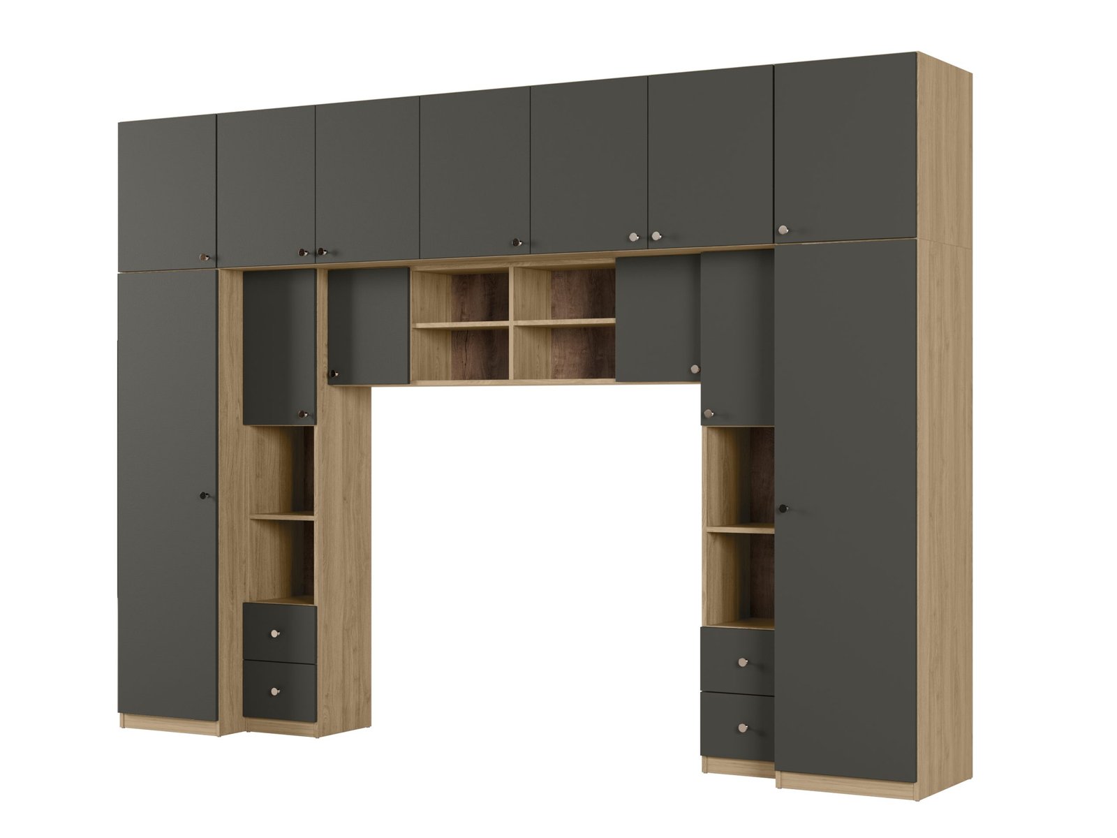 Baldai pagaminti iš aukščiausios kokybės, 18 mm storio, dvipusės laminuotos „Woodeco“ (anksčiau „Pfleiderer“) plokštės.Visi elementai, įskaitant ir apatinę pusę prie grindų, yra klijuoti itin patvariu 0,8 mm storio PVC kraštu. Tai suteikia papildomą apsaugą nuo drėgmės valant grindis. Galinės sienelės pagamintos iš 3 mm storio HDF plokštės, viena pusė lakuota (spalva, panaši į baldo korpuso). Ši parinktis suteikia galimybę rinktis standartinę arba aukščiausios kokybės furnitūrą. Spalva: carpenter grafit. Kaina nurodyta be veidrodžių.