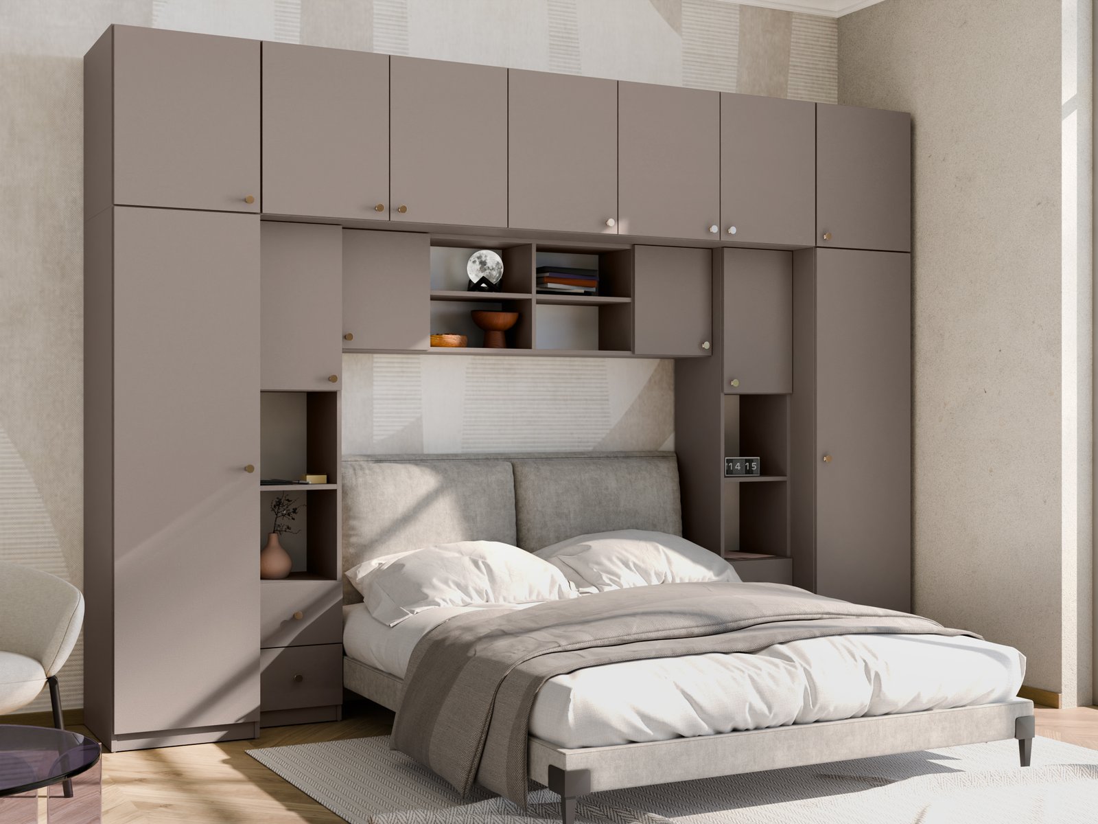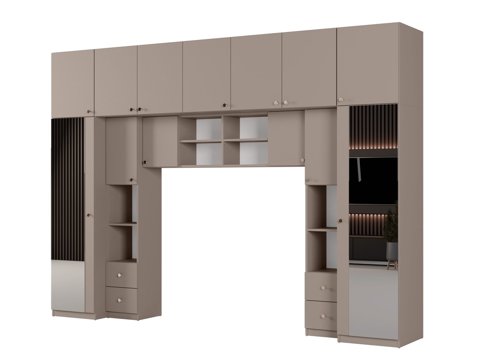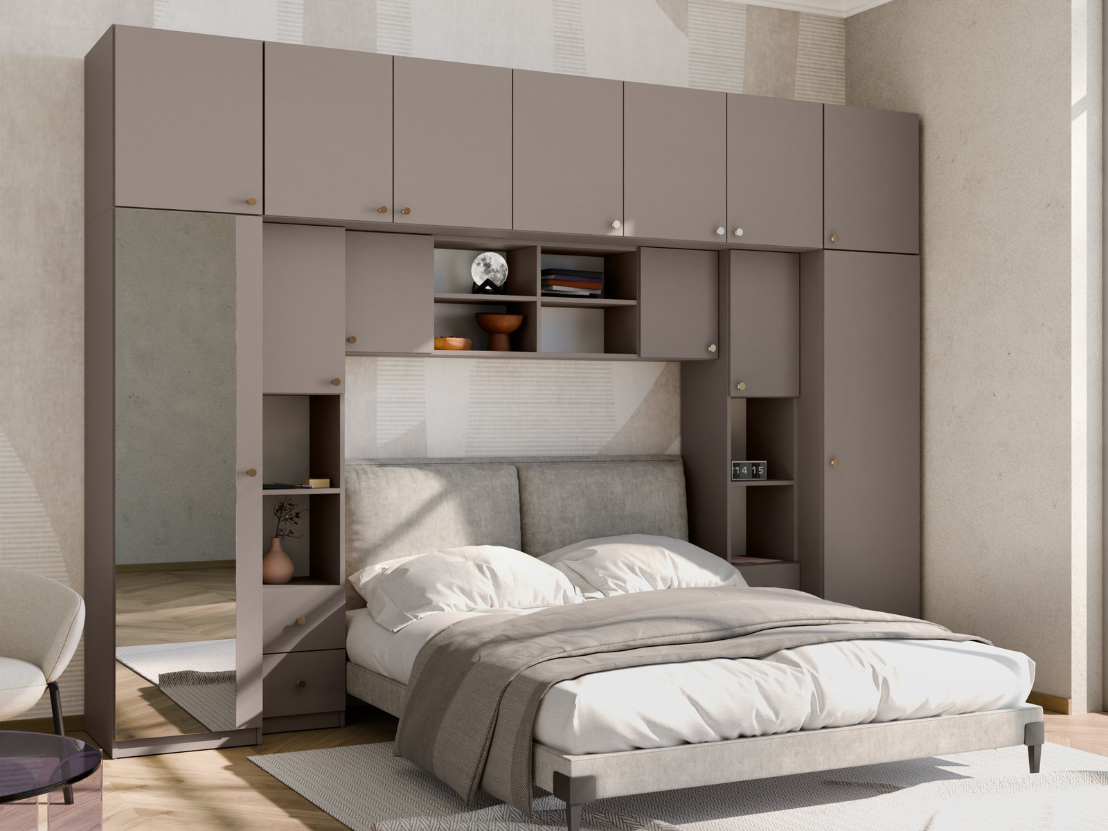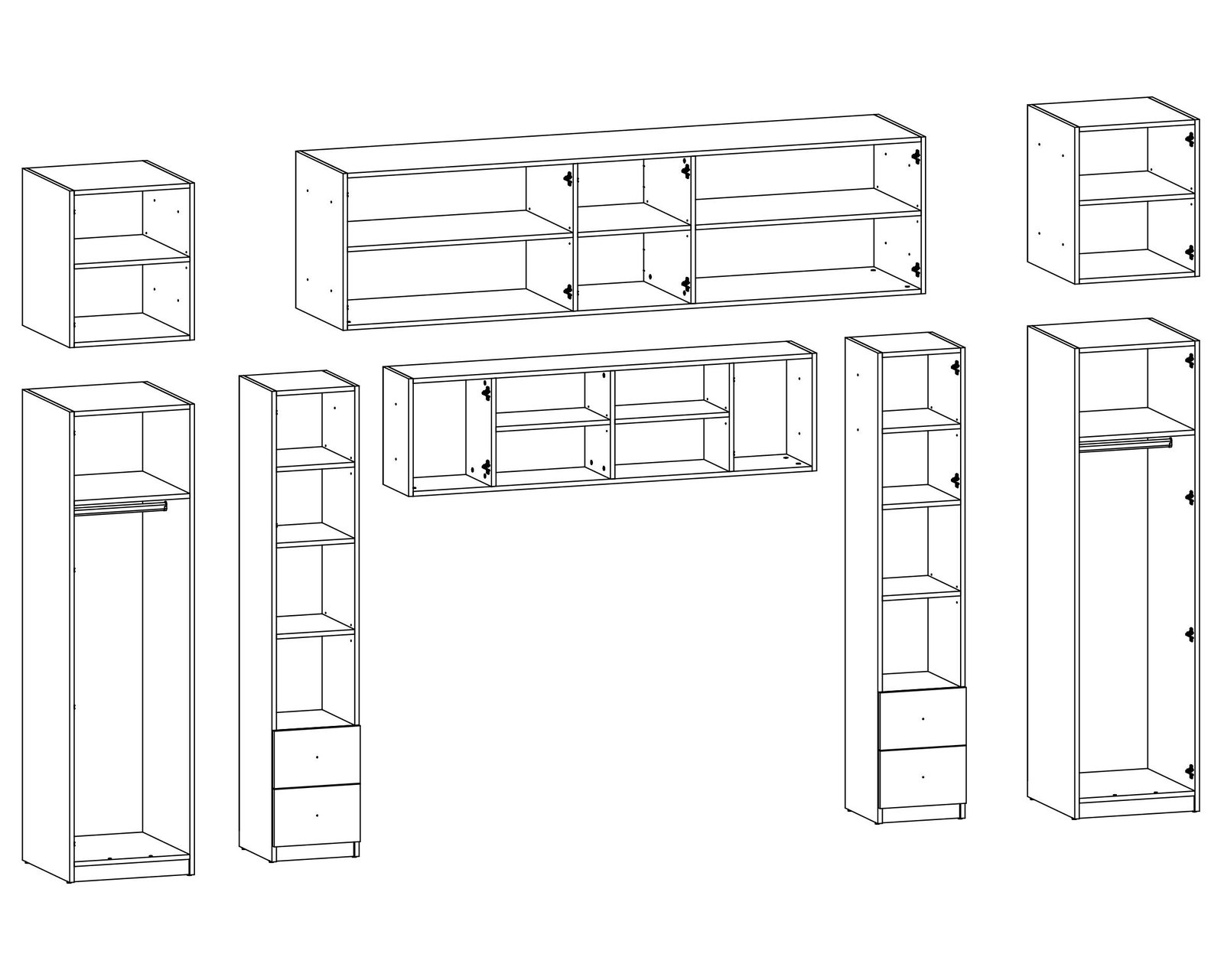 Baldai pagaminti iš aukščiausios kokybės, 18 mm storio, dvipusės laminuotos „Woodeco“ (anksčiau „Pfleiderer“) plokštės.Visi elementai, įskaitant ir apatinę pusę prie grindų, yra klijuoti itin patvariu 0,8 mm storio PVC kraštu. Tai suteikia papildomą apsaugą nuo drėgmės valant grindis. Galinės sienelės pagamintos iš 3 mm storio HDF plokštės, viena pusė lakuota (spalva, panaši į baldo korpuso). Ši parinktis suteikia galimybę rinktis standartinę arba aukščiausios kokybės furnitūrą. Spalva: sepia. Kaina nurodyta be veidrodžių.