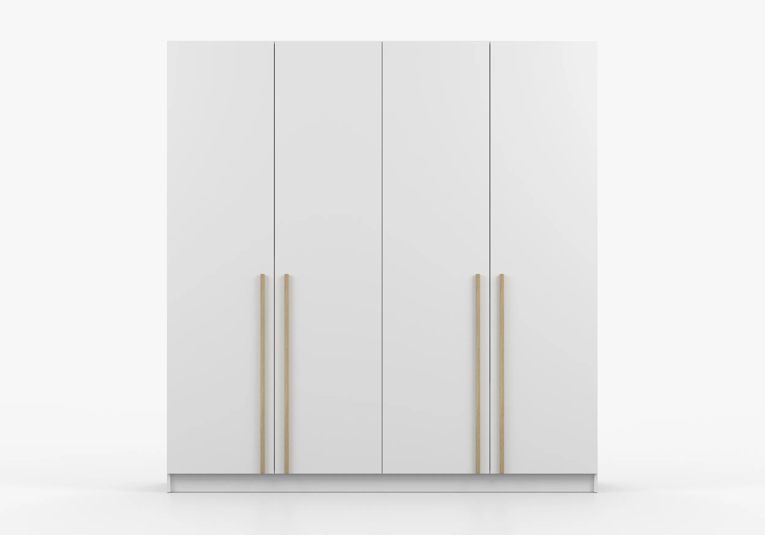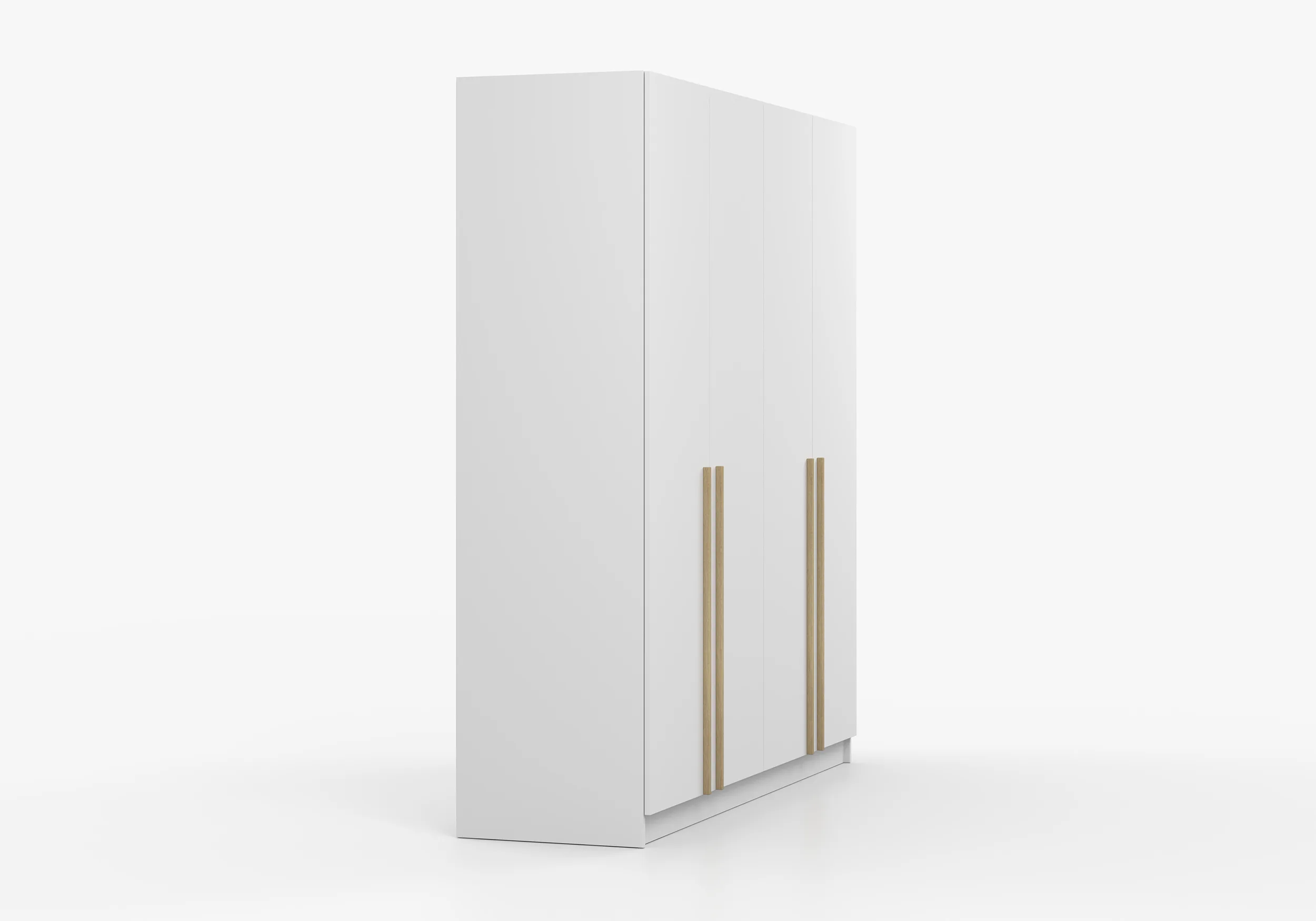 Tradiciškai atidaromos durys užtikrina patogią prieigą prie vidaus, kuriame yra keturi praktiški pakabos bėgeliai ir funkcionalios lentynos. Šešių durų spinta su tradiciniu atidarymu ,16 mm storio laminuota baldų plokštė.Pakabos  (2 vnt.) Kraštai pilnai apdailinti ABS fanera .Erdvios lentynos (5 vnt.)Spalva-balta matinė.