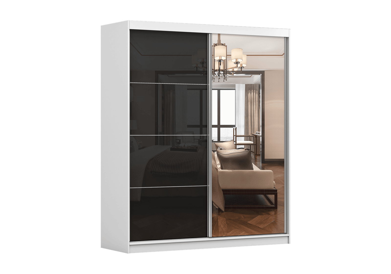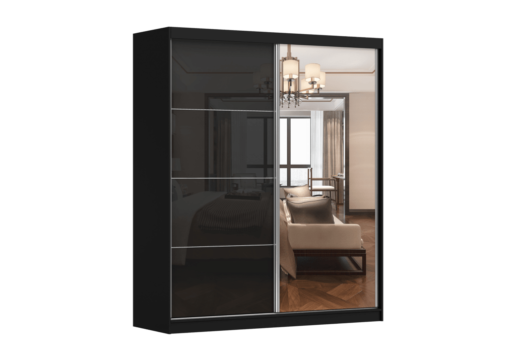 Spintos yra trijų skirtingų pločių: 183 cm, 203 cm ir 233 cm. Kiekviena spinta turi stumdomas duris, kurios viena pusė yra veidrodinė, o kita – pagaminta iš elegantiškos juodos blizgios plokštės, suteikiančios  kolekcijai unikalų charakterį.