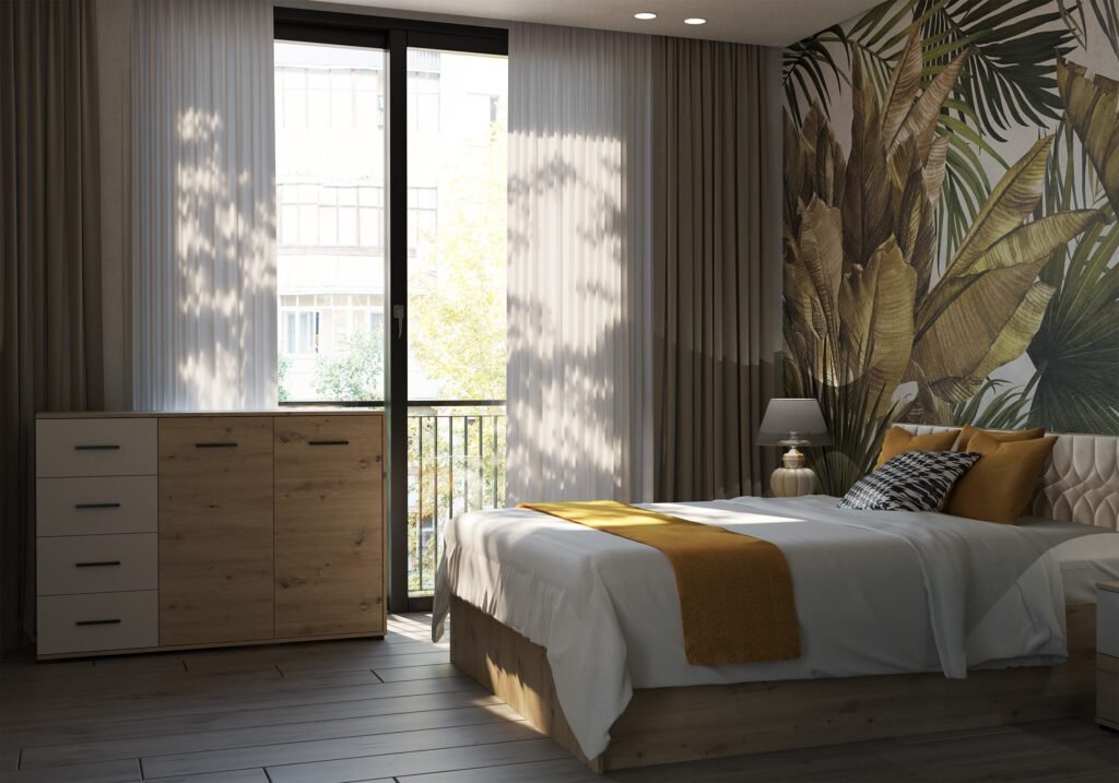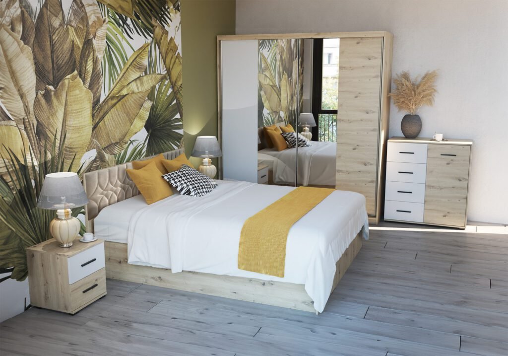 - Komplektą sudaro: Spinta 203*218*41 , komoda 90*96*45 cm,