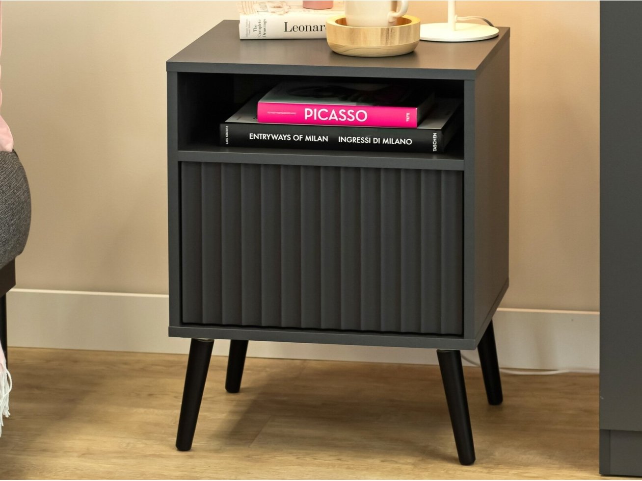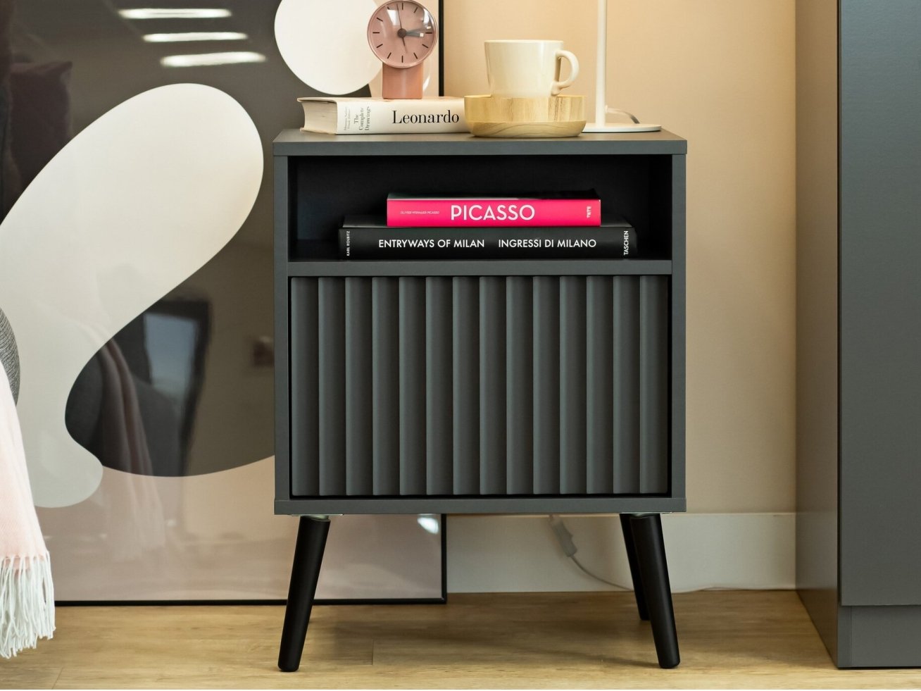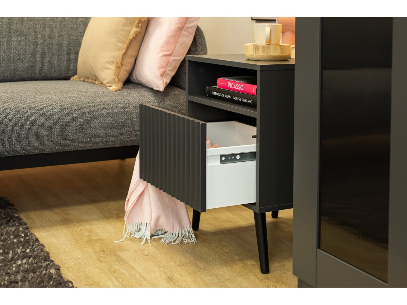 - Medžiaga: MFP- E1 emisijos medžio drožlių plokštė, kraštai ABS, medinės kojelės.