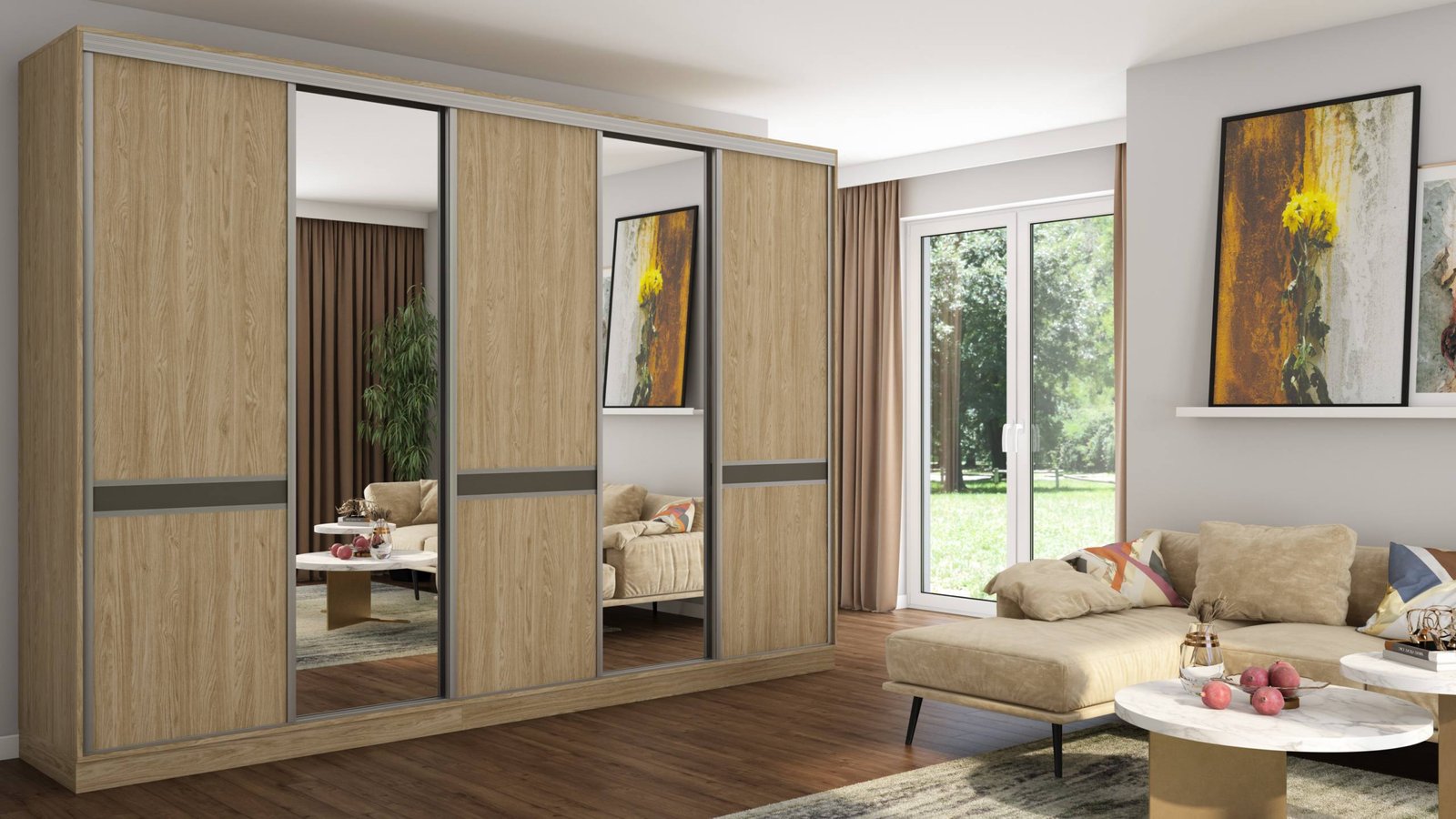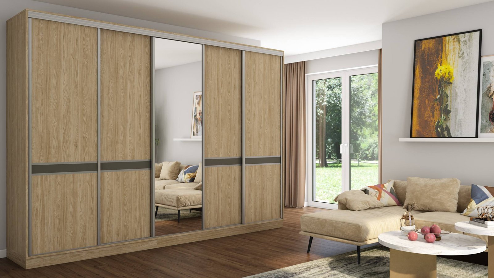 • Aliuminio rankenos per visą stumdomų durų ilgį, todėl jas yra lengviau stumdyti, jos papildomai standina duris per visą aukštį, pašalina durų lenkimo riziką!