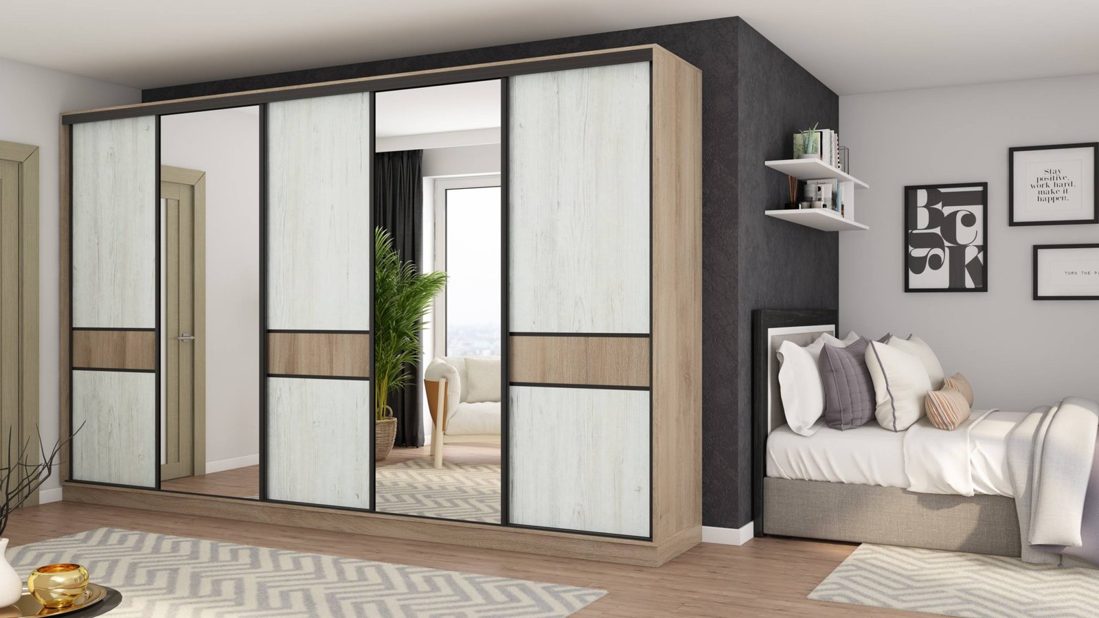 - Baldai parduodami pakuotėse. SPALVA:Dąb Lorenzo/Sosna Anderson /Profilis juodas
