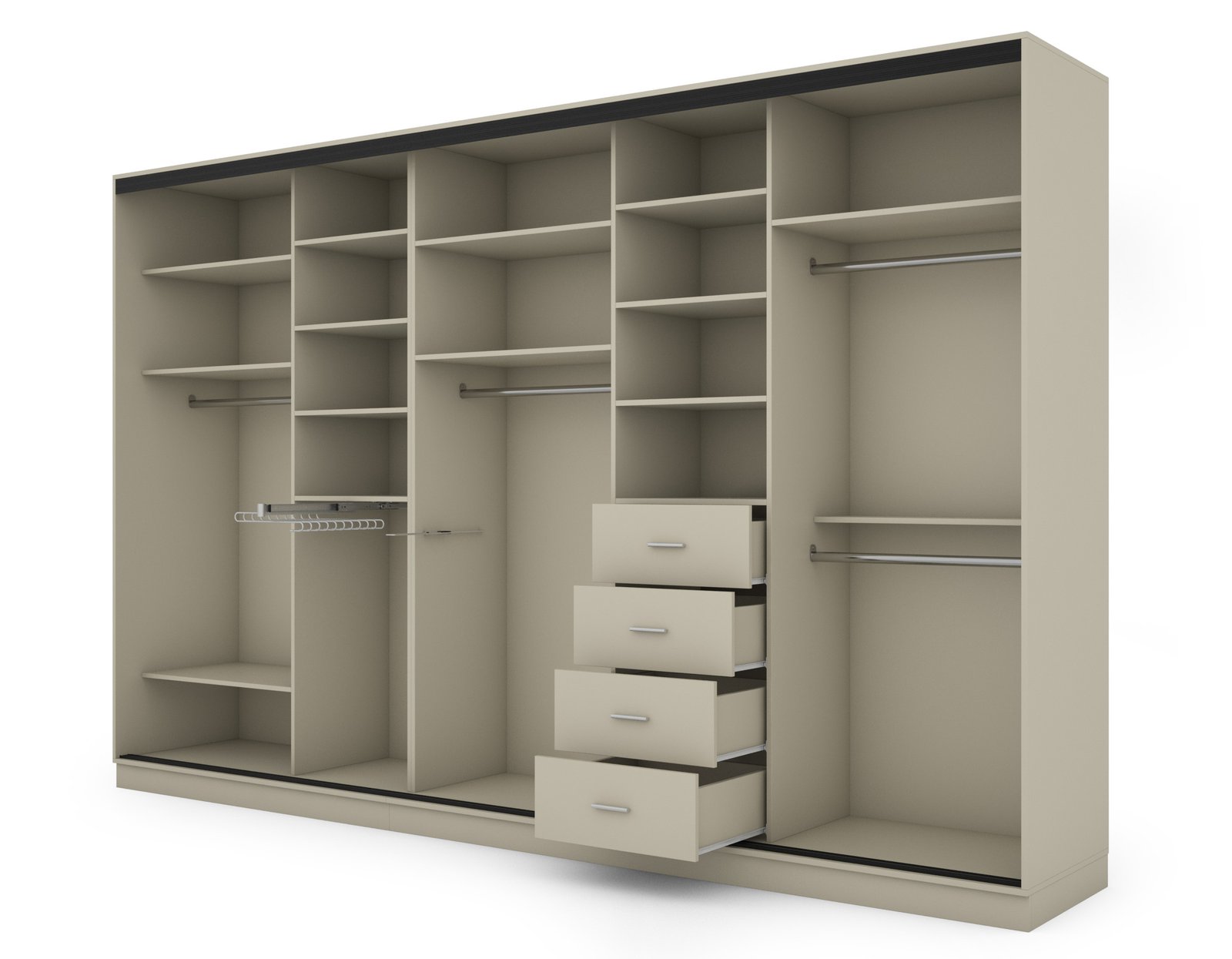 - 4 labai patogus ir talpus stalčiai spintos viduje.