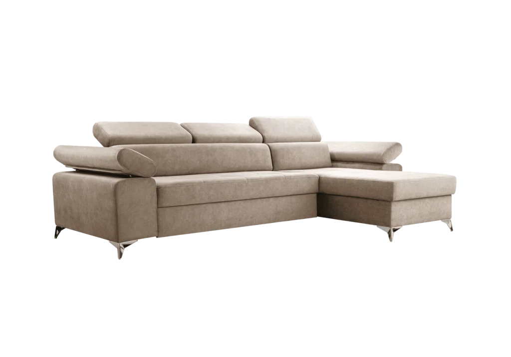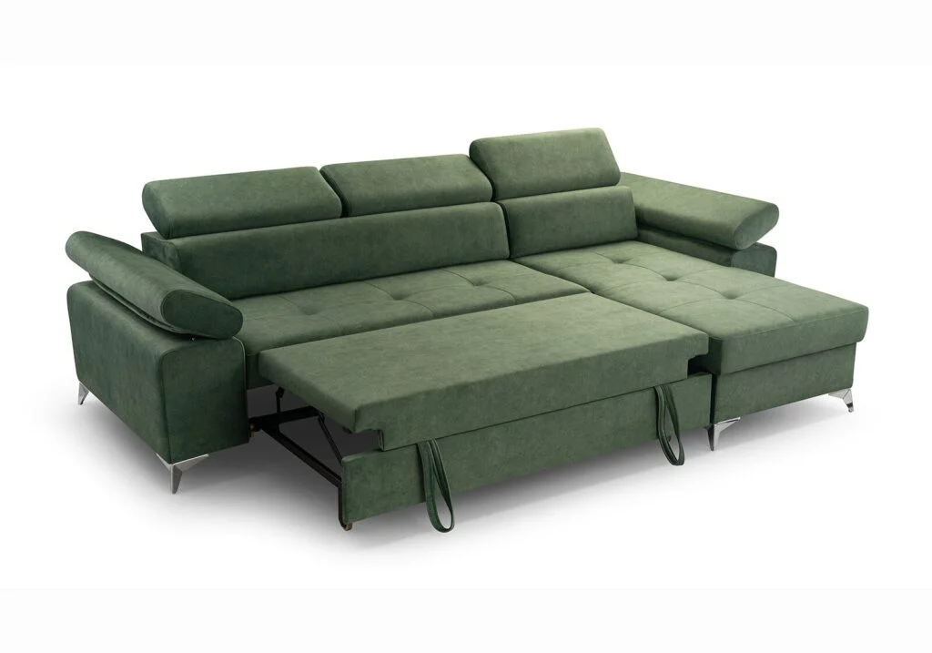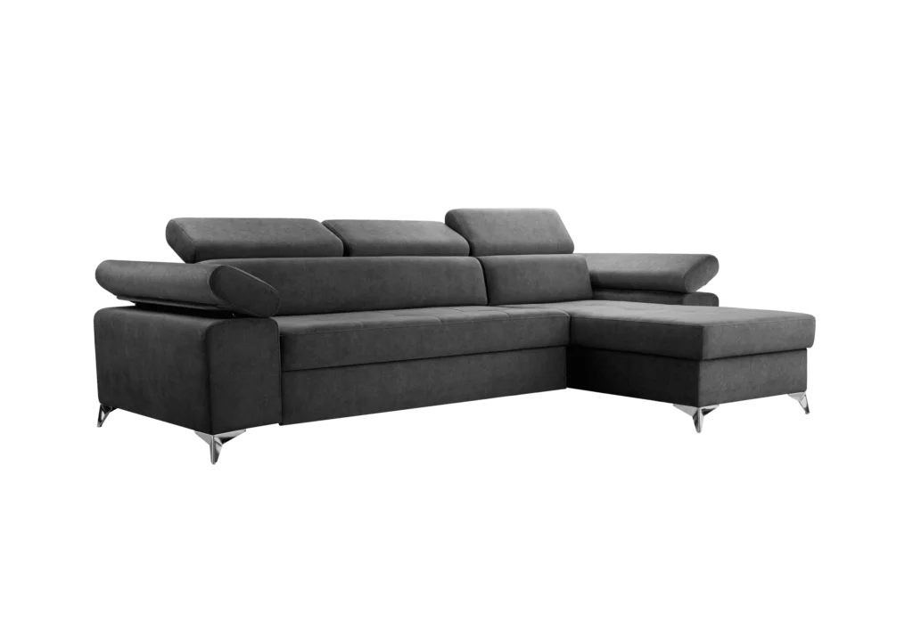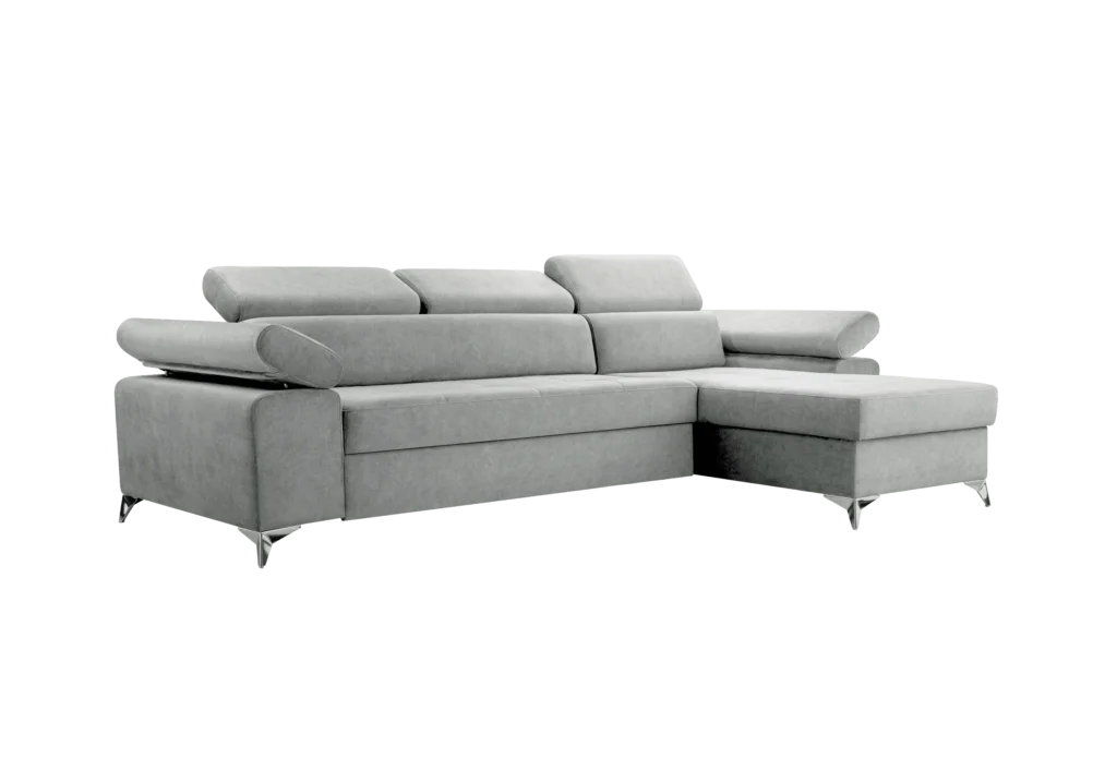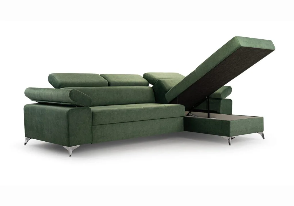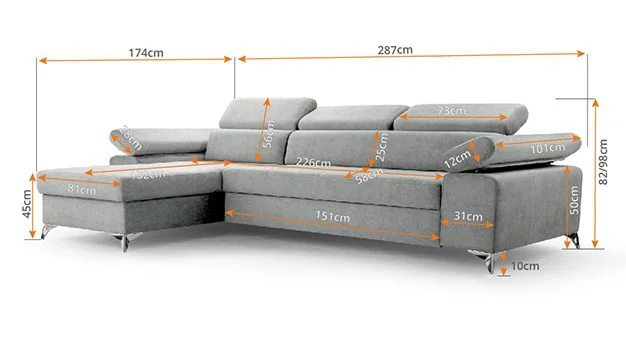 - Šis stilingas kampas su reguliuojamais galvūgaliais , ant metalinių kojelių. Yra patalynės dėžė ir miegojimo funkcija. Galima rinktis spalvas. Gali būti kairės arba dešinės pusės. Delfino tipo išskleidimo mechanizmas. Kampas yra pagamintas iš aukštos kokybės medžiagų.Rėmas pagamintas iš medžio masyvo ir baldų plokštės,sėdynėje: itin lankstus T 30 putplastis,atlošo užpildas: putplastis, silikonas,apmušalų juostelės. Kampą siūlome rinktis iš 6 audinio NOEL spalvų. Kampo sidabrinės kojos suteikia baldui modernumo. Reguliuojamas atlošas. Kampinė pusė su reguliuojamu porankiu. Kampinėje sofoje yra miegamoji funkcija 223x127cm Yra konteineris patalynei. Miegamo mechanizmo tipas: DELFIN Aukštis su pakeltu porankiu:76cm,aukštis su pakelta galvos atrama:95 cm Kampinės sofos atlošas aptrauktas visumos spalvą atitinkančia medžiaga.Po išskleidimo miegamoji vieta apmušama kampinės sofos spalva. Noel audinys yra labai maloni liesti apmušalų medžiaga. Jis turi storą pamušalą, kuris suteikia apimties ir užtikrina labai didelį patvarumą. Audinys pagamintas naudojant Easy Clean technologiją, todėl išlaikyti švarą nesukels nė menkiausios problemos. Baldo nugara aptraukta apmušalų spalvos audiniu, todėl juos galima laisvai pastatyti erdvėje, neprisirišant prie sienos. Tai patogi ir funkcionali vieta miegoti, todėl tai idealus pasirinkimas tiek sėdėti, tiek miegoti.