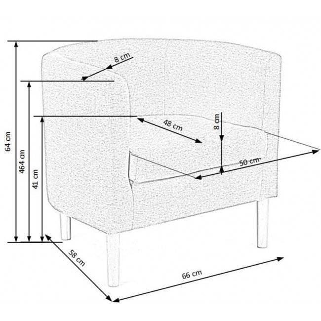 - Matmenys (plotis/gylis/aukštis/sėdimosios dalies aukštis): 66/58/64/41 cm