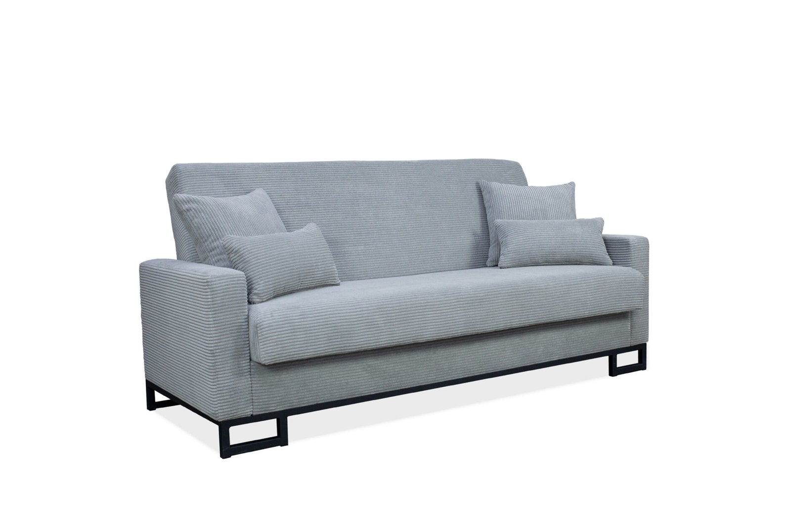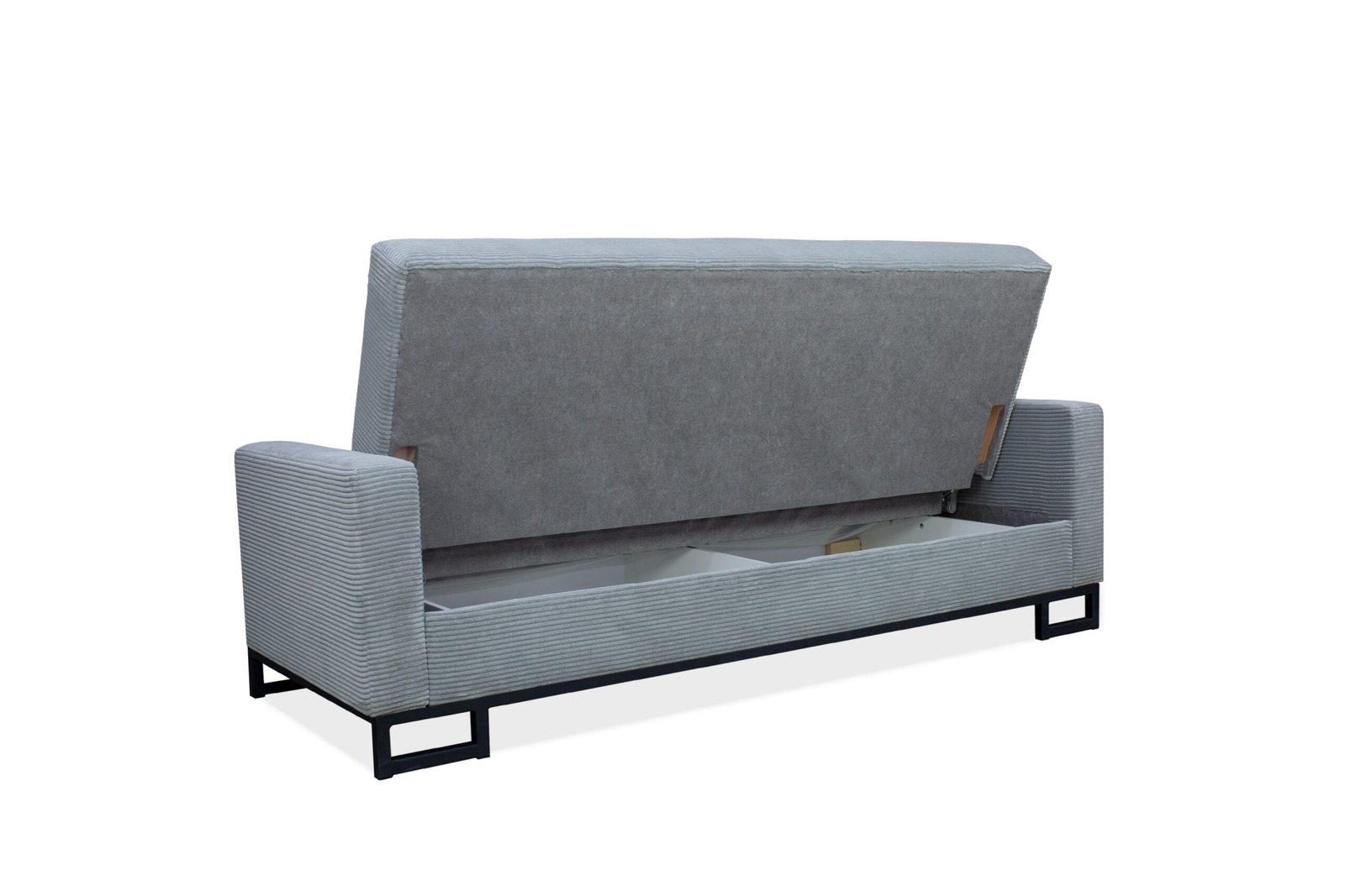 Sofa-lova yra 220 pločio, 94-aukščio, 96 -gylio. Turi  patalynės dėžę ir miegojimo 130 x 200  funkciją.
