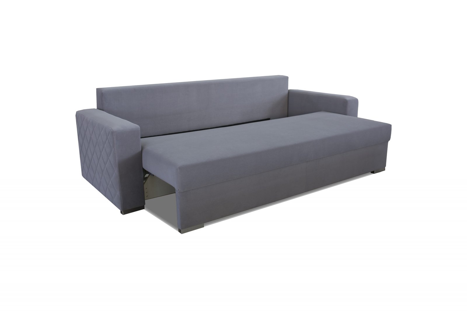 Sofa-lova yra 233 pločio, 86-aukščio,94 – gylio. Turi patalynės dėžę ir miegojimo 147 x 197 funkciją.
