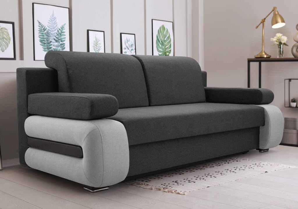 - Sofa pasižyminti aptakia forma ir universaliomis spalvomis, yra puikus sprendimas bet kokiam kambariui. Jos modernų charakterį pabrėžia patraukli galvos atrama ir patogūs porankiai. Ši trijų vietų sofa puikiai tinka atsipalaiduoti ir priimti svečius dieną, o naktį ją galima paversti išskleidžiama lova. Ji turi 196 x 142 cm miegojimo funkciją ir patalynės skyrių.BAHAMA audinys – patvarus apmušalų audinys, pasižymintis dideliu atsparumu dilimui ir plyšimui. Šis universalus audinys turi poliesterio pagrindą su patrauklia, lygia ir nesipūkuojančia tekstūra. Apmušalus lengva valyti. Plotis: 205 cm Aukštis: 80 cm Gylis: 98 cm Pagamintas iš aukštos kokybės medžiagų. Rėmas pagamintas iš medžio masyvo ir baldų lentos Sėdynėje ir atloše: BONEL spyruoklė, labai elastingas T 30 putplastis.