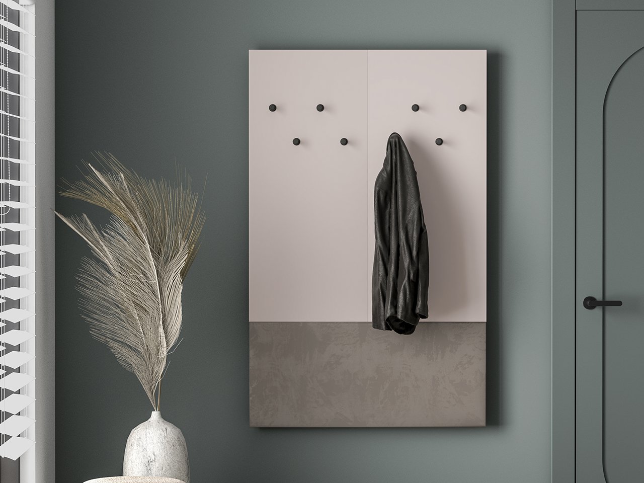 kabyklą sudaro aštuoni patvarūs kabliukai viršutiniams drabužiams. Šio tipo paltų kabykla užtikrina greitą ir lengvą prieigą prie reikiamų drabužių. Apatinė kabyklos dalis turi minkštą, apmuštą paviršių, kuris tarnauja kaip patogi atrama. Aksominis audinys suteikia interjerui šilumos ir elegancijos pojūtį