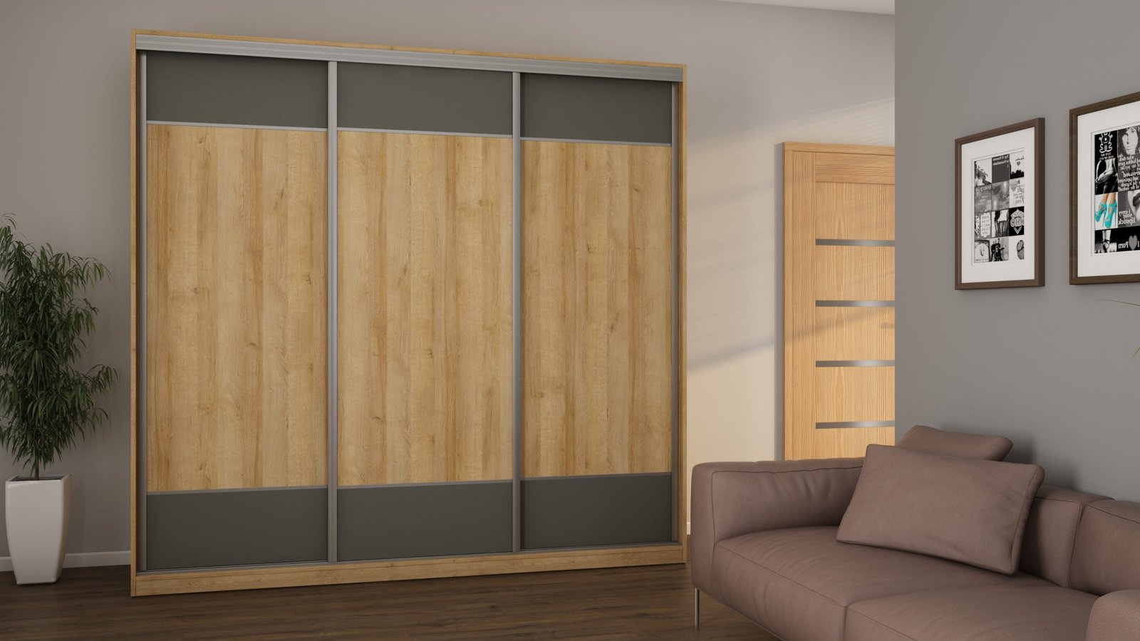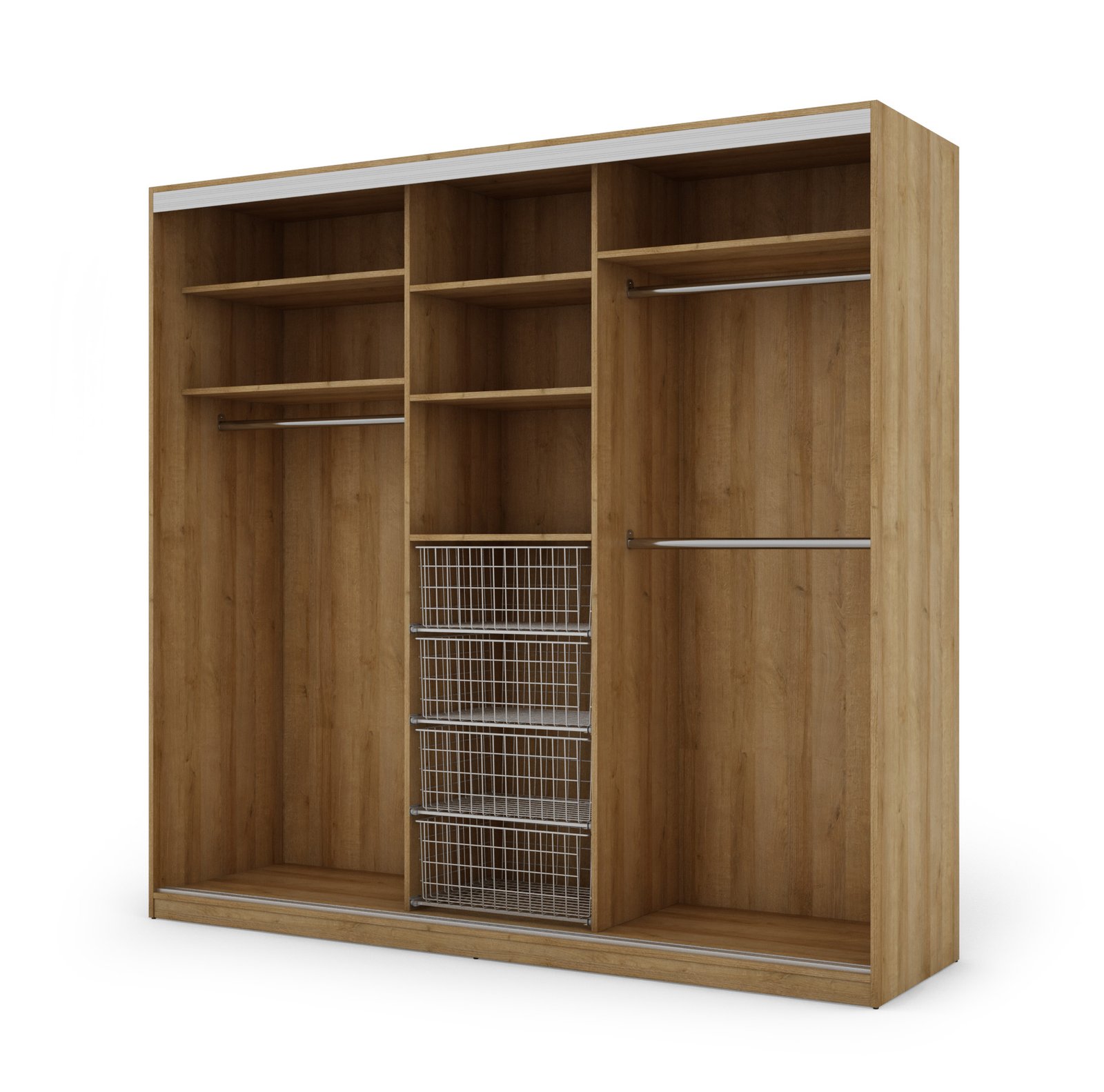Ieškote funkcionalios spintos savo miegamajam ar mažam prieškambariui? Elegantiška ir moderni stumdoma spinta yra ne tik naudingas baldas, bet ir dekoratyvinis elementas jūsų namams! Atnaujinkite savo interjerą ir mėgaukitės modernia spinta, kurią galite laisvai pritaikyti pagal savo poreikius. Stumdoma spinta yra ergonomiško dizaino ir puikaus funkcionalumo derinys. Spinta buvo sukurta galvojant apie modernų ir minimalistinį interjerą. Jos rėmas pagamintas iš tvirtos, aukštos kokybės laminuotos plokštės, užtikrinančios stabilumą ir ilgaamžiškumą. Spintos spalvą galite priderinti prie savo interjero dizaino. Taip pat galite užsisakyti spintą su veidrodžiais, kurie vizualiai padidins kambarį. Spinta pagaminta iš aukščiausios kokybės, 18 mm storio, dvipusės laminuotos plokštės iš „Woodeco“ (anksčiau „Pfleiderer“). Visos dalys, įskaitant dugną iš grindų pusės, padengtos itin patvariu 0,8 mm storio PVC kraštu. Tai suteikia papildomą apsaugą nuo drėgmės valant grindis. Galinės sienelės pagamintos iš 3 mm storio, vienpusės laminuotos HDF plokštės (atitinkančios baldo korpuso spalvą). Metalinės drabužių pakabos. Nelygios grindys – problema? Spintos kojelės aprūpintos tvirtomis, reguliuojamomis slydimo … Aliuminio rankenos per visą durelių aukštį leidžia jas lengvai perkelti, nerizikuojant jų sulenkti. Buferiniai šepetėliai apsaugo nuo smūgių į spintelės šonus.