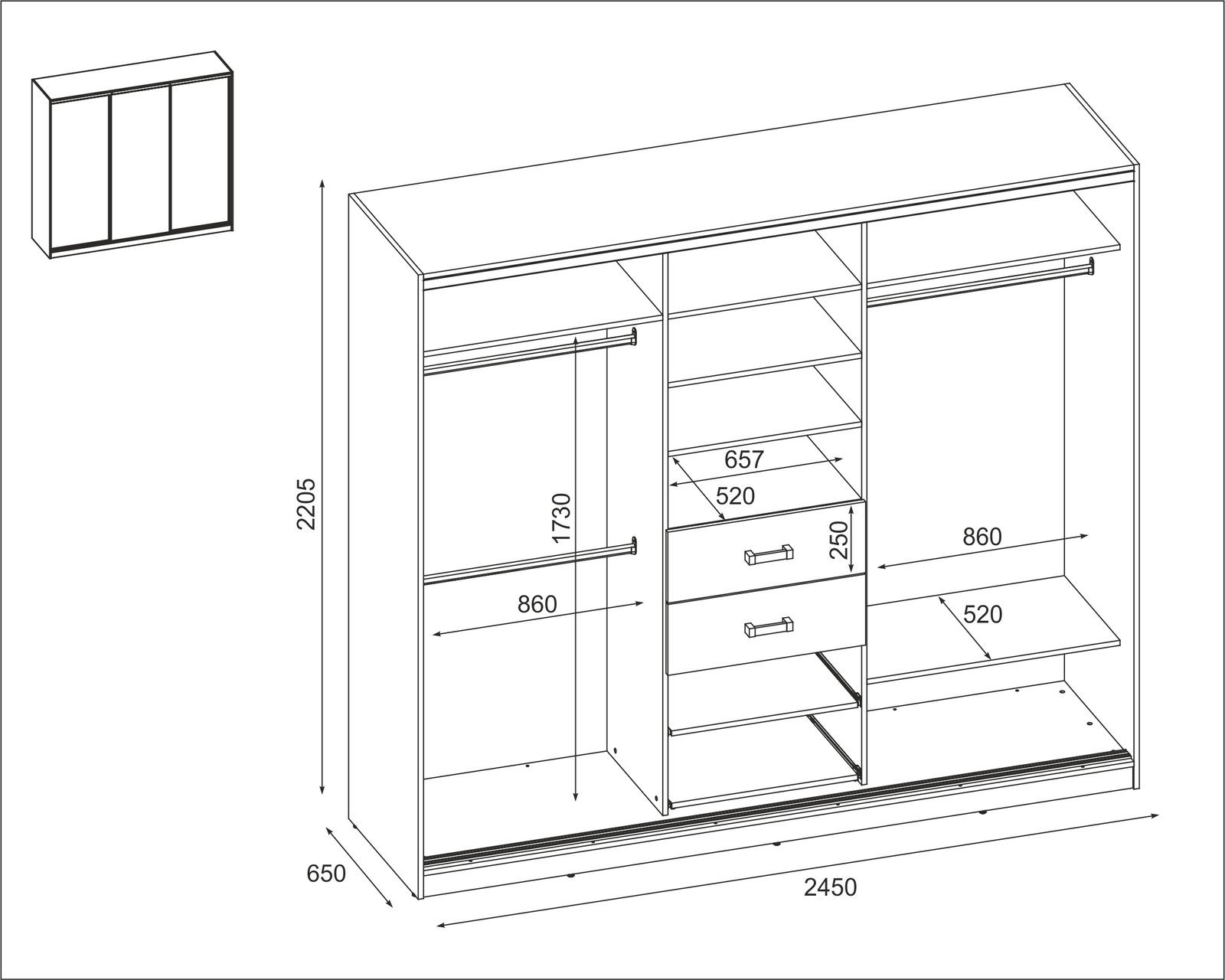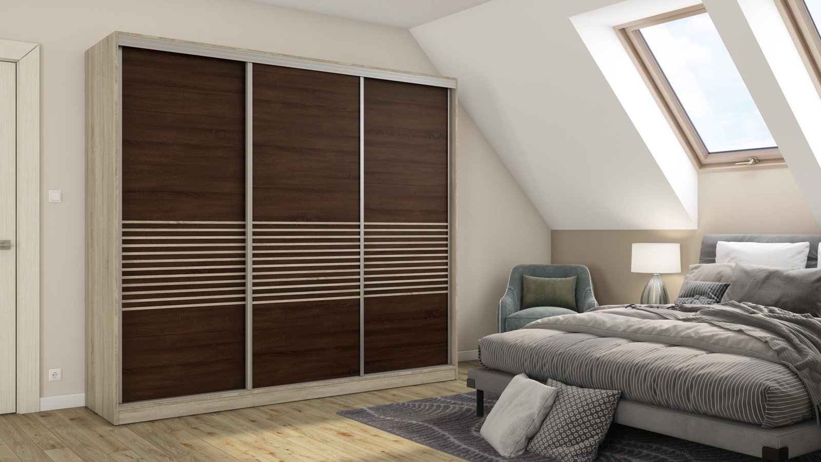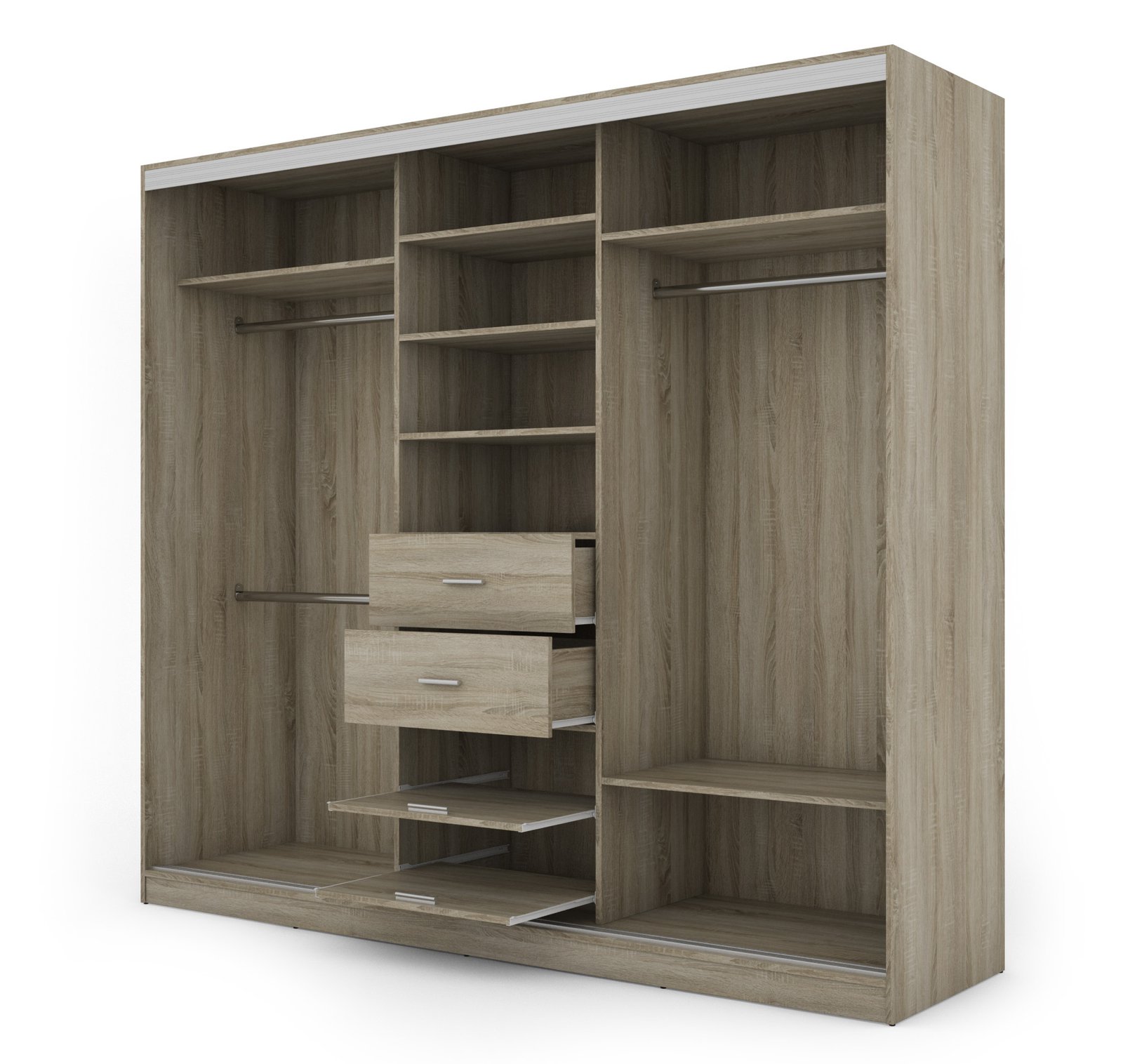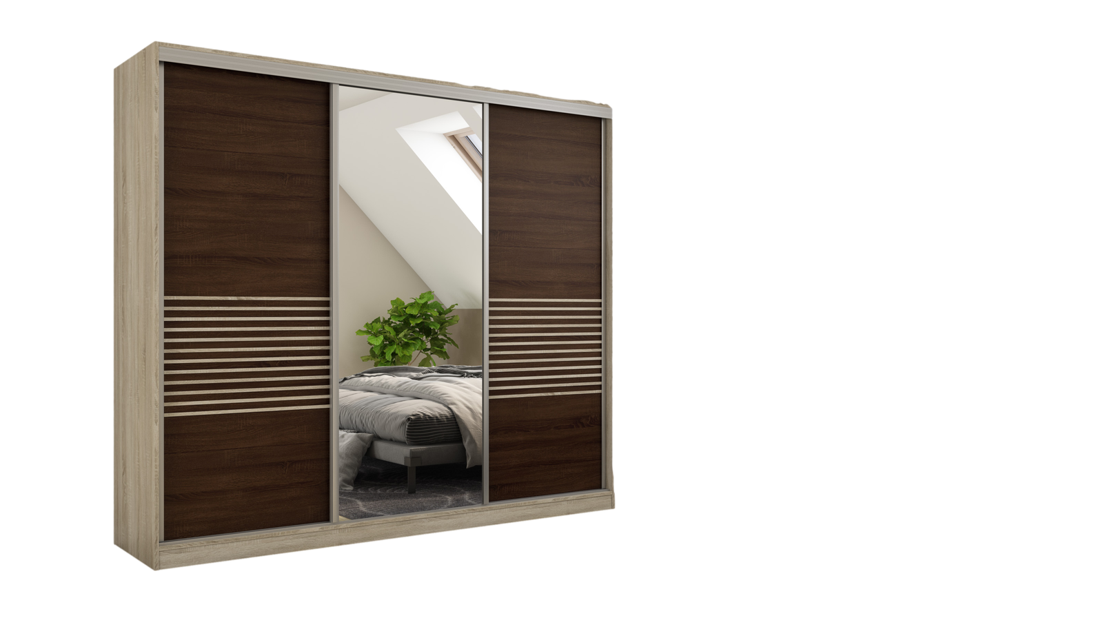 Ieškote funkcionalios spintos savo miegamajam ar mažam prieškambariui? Elegantiška ir moderni stumdoma spinta yra ne tik naudingas baldas, bet ir dekoratyvinis elementas jūsų namams! Atnaujinkite savo interjerą ir mėgaukitės modernia spinta, kurią galite laisvai pritaikyti pagal savo poreikius. Stumdoma spinta yra ergonomiško dizaino ir puikaus funkcionalumo derinys. Spinta buvo sukurta galvojant apie modernų ir minimalistinį interjerą. Jos rėmas pagamintas iš tvirtos, aukštos kokybės laminuotos plokštės, užtikrinančios stabilumą ir ilgaamžiškumą. Spintos spalvą galite priderinti prie savo interjero dizaino. Taip pat galite užsisakyti spintą su veidrodžiais, kurie vizualiai padidins kambarį. Spinta pagaminta iš aukščiausios kokybės, 18 mm storio, dvipusės laminuotos plokštės iš „Woodeco“ (anksčiau „Pfleiderer“). Visos dalys, įskaitant dugną iš grindų pusės, padengtos itin patvariu 0,8 mm storio PVC kraštu. Tai suteikia papildomą apsaugą nuo drėgmės valant grindis. Galinės sienelės pagamintos iš 3 mm storio, vienpusės laminuotos HDF plokštės (atitinkančios baldo korpuso spalvą). Metalinės drabužių pakabos. Nelygios grindys – problema? Spintos kojelės aprūpintos tvirtomis, reguliuojamomis slydimo … Aliuminio rankenos per visą durelių aukštį leidžia jas lengvai perkelti, nerizikuojant jų sulenkti. Buferiniai šepetėliai apsaugo nuo smūgių į spintelės šonus.