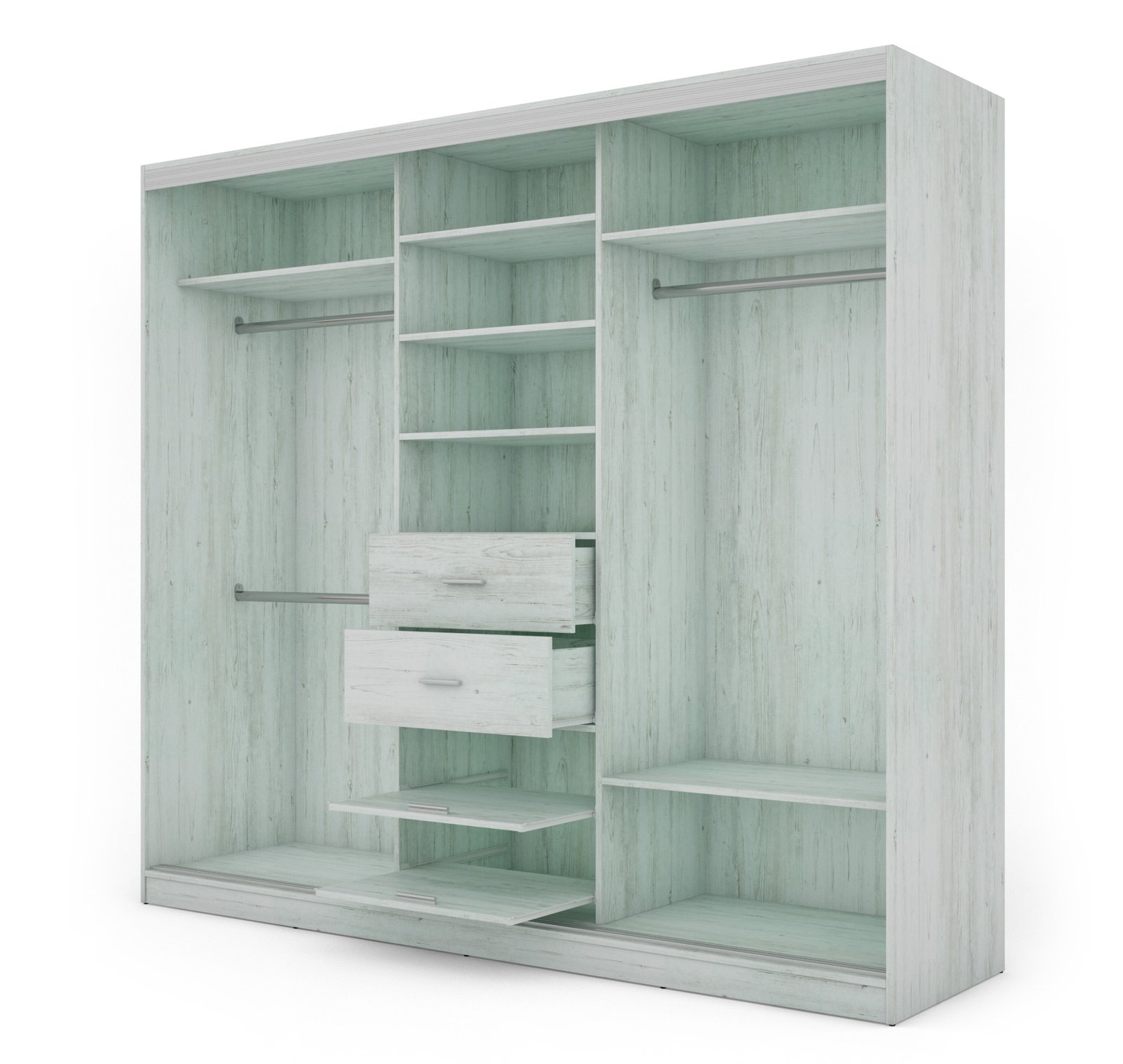 Ieškote funkcionalios spintos savo miegamajam ar mažam prieškambariui? Elegantiška ir moderni stumdoma spinta yra ne tik naudingas baldas, bet ir dekoratyvinis elementas jūsų namams! Atnaujinkite savo interjerą ir mėgaukitės modernia spinta, kurią galite laisvai pritaikyti pagal savo poreikius. Stumdoma spinta yra ergonomiško dizaino ir puikaus funkcionalumo derinys. Spinta buvo sukurta galvojant apie modernų ir minimalistinį interjerą. Jos rėmas pagamintas iš tvirtos, aukštos kokybės laminuotos plokštės, užtikrinančios stabilumą ir ilgaamžiškumą. Spintos spalvą galite priderinti prie savo interjero dizaino. Taip pat galite užsisakyti spintą su veidrodžiais, kurie vizualiai padidins kambarį. Spinta pagaminta iš aukščiausios kokybės, 18 mm storio, dvipusės laminuotos plokštės iš „Woodeco“ (anksčiau „Pfleiderer“). Visos dalys, įskaitant dugną iš grindų pusės, padengtos itin patvariu 0,8 mm storio PVC kraštu. Tai suteikia papildomą apsaugą nuo drėgmės valant grindis. Galinės sienelės pagamintos iš 3 mm storio, vienpusės laminuotos HDF plokštės (atitinkančios baldo korpuso spalvą). Metalinės drabužių pakabos. Nelygios grindys – problema? Spintos kojelės aprūpintos tvirtomis, reguliuojamomis slydimo … Aliuminio rankenos per visą durelių aukštį leidžia jas lengvai perkelti, nerizikuojant jų sulenkti. Buferiniai šepetėliai apsaugo nuo smūgių į spintelės šonus.