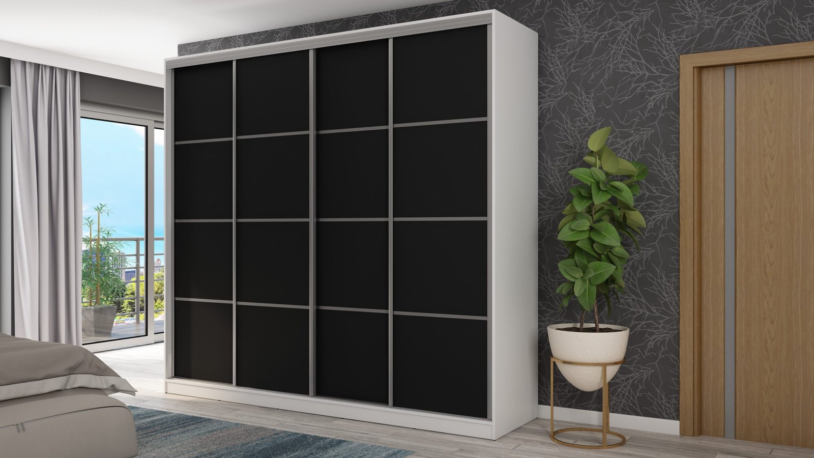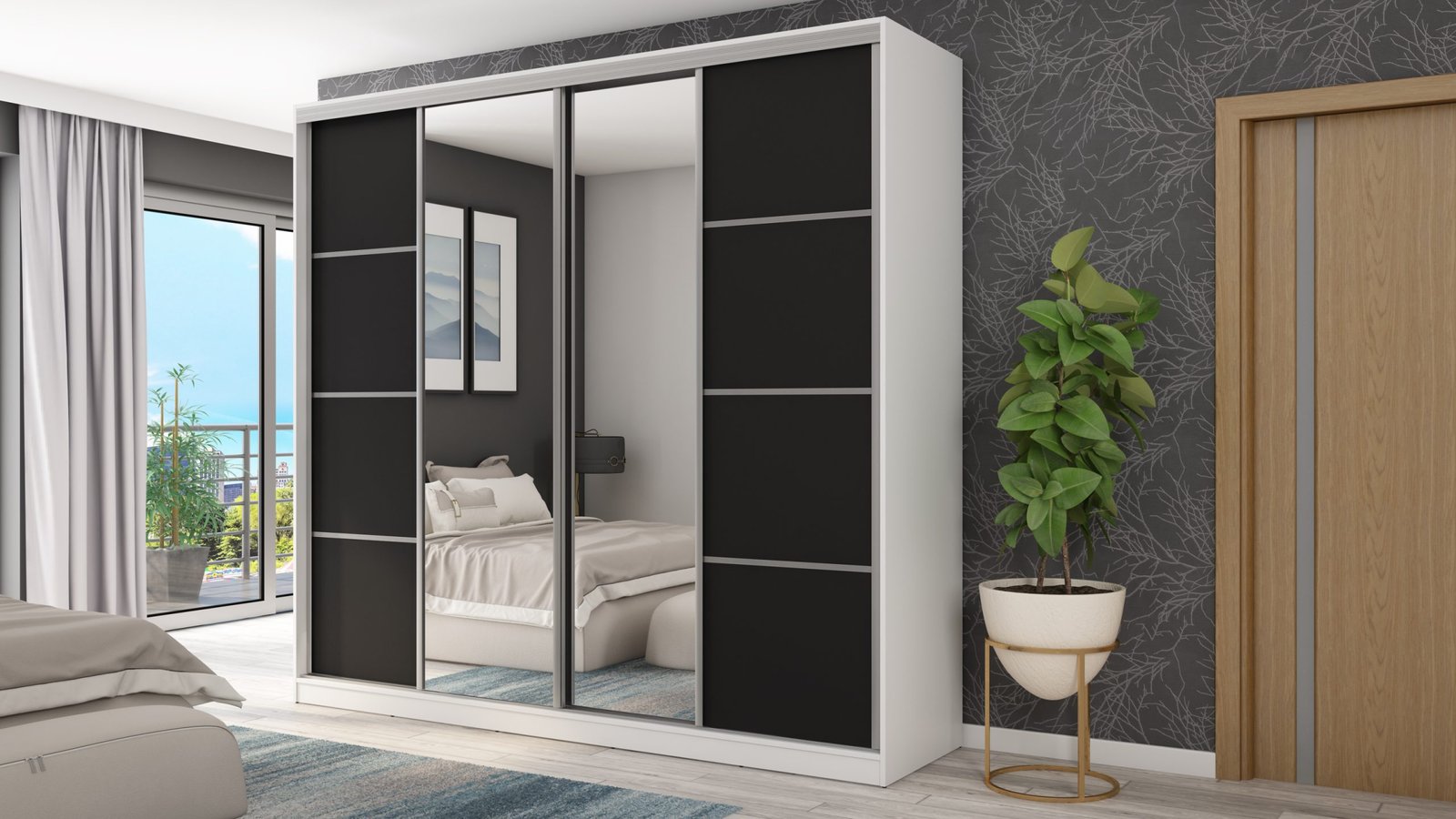 Ieškote funkcionalios spintos savo miegamajam ar mažam prieškambariui? Elegantiška ir moderni stumdoma spinta yra ne tik naudingas baldas, bet ir dekoratyvinis elementas jūsų namams! Atnaujinkite savo interjerą ir mėgaukitės modernia spinta, kurią galite laisvai pritaikyti pagal savo poreikius. Stumdoma spinta yra ergonomiško dizaino ir puikaus funkcionalumo derinys. Spinta buvo sukurta galvojant apie modernų ir minimalistinį interjerą. Jos rėmas pagamintas iš tvirtos, aukštos kokybės laminuotos plokštės, užtikrinančios stabilumą ir ilgaamžiškumą. Spintos spalvą galite priderinti prie savo interjero dizaino. Taip pat galite užsisakyti spintą su veidrodžiais, kurie vizualiai padidins kambarį. Spinta pagaminta iš aukščiausios kokybės, 18 mm storio, dvipusės laminuotos plokštės iš „Woodeco“ (anksčiau „Pfleiderer“). Visos dalys, įskaitant dugną iš grindų pusės, padengtos itin patvariu 0,8 mm storio PVC kraštu. Tai suteikia papildomą apsaugą nuo drėgmės valant grindis. Galinės sienelės pagamintos iš 3 mm storio, vienpusės laminuotos HDF plokštės (atitinkančios baldo korpuso spalvą). Metalinės drabužių pakabos. Nelygios grindys – problema? Spintos kojelės aprūpintos tvirtomis, reguliuojamomis slydimo … Aliuminio rankenos per visą durelių aukštį leidžia jas lengvai perkelti, nerizikuojant jų sulenkti. Buferiniai šepetėliai apsaugo nuo smūgių į spintelės šonus.
