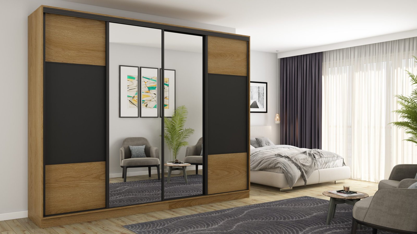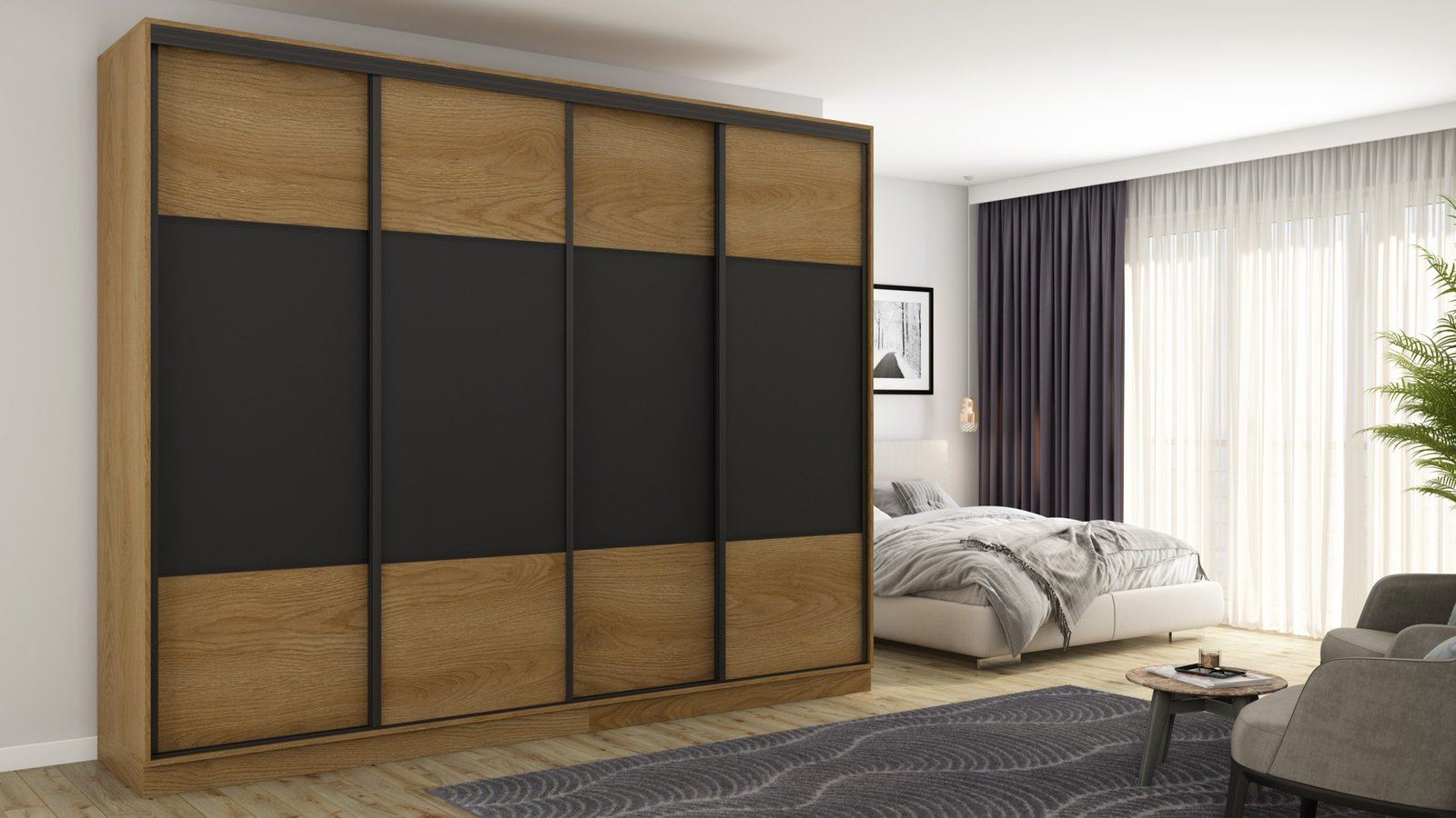 Ieškote funkcionalios spintos savo miegamajam ar mažam prieškambariui? Elegantiška ir moderni stumdoma spinta yra ne tik naudingas baldas, bet ir dekoratyvinis elementas jūsų namams! Atnaujinkite savo interjerą ir mėgaukitės modernia spinta, kurią galite laisvai pritaikyti pagal savo poreikius. Stumdoma spinta yra ergonomiško dizaino ir puikaus funkcionalumo derinys. Spinta buvo sukurta galvojant apie modernų ir minimalistinį interjerą. Jos rėmas pagamintas iš tvirtos, aukštos kokybės laminuotos plokštės, užtikrinančios stabilumą ir ilgaamžiškumą. Spintos spalvą galite priderinti prie savo interjero dizaino. Taip pat galite užsisakyti spintą su veidrodžiais, kurie vizualiai padidins kambarį. Spinta pagaminta iš aukščiausios kokybės, 18 mm storio, dvipusės laminuotos plokštės iš „Woodeco“ (anksčiau „Pfleiderer“). Visos dalys, įskaitant dugną iš grindų pusės, padengtos itin patvariu 0,8 mm storio PVC kraštu. Tai suteikia papildomą apsaugą nuo drėgmės valant grindis. Galinės sienelės pagamintos iš 3 mm storio, vienpusės laminuotos HDF plokštės (atitinkančios baldo korpuso spalvą). Metalinės drabužių pakabos. Nelygios grindys – problema? Spintos kojelės aprūpintos tvirtomis, reguliuojamomis slydimo … Aliuminio rankenos per visą durelių aukštį leidžia jas lengvai perkelti, nerizikuojant jų sulenkti. Buferiniai šepetėliai apsaugo nuo smūgių į spintelės šonus.