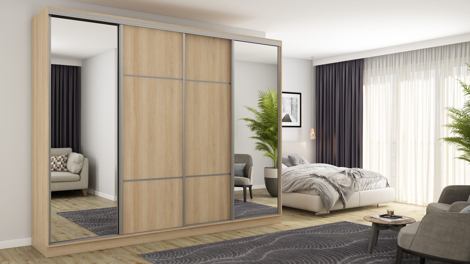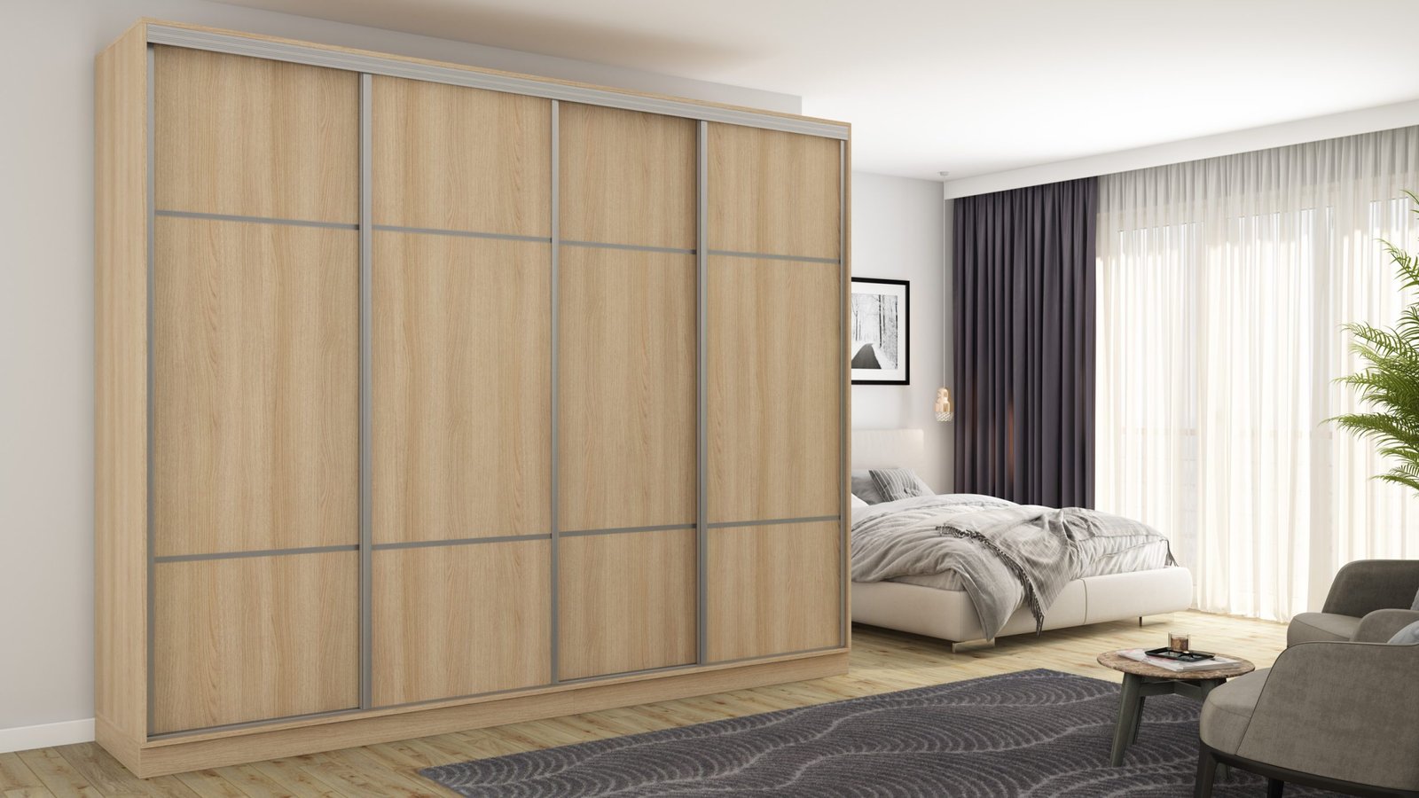 Ieškote funkcionalios spintos savo miegamajam ar mažam prieškambariui? Elegantiška ir moderni stumdoma spinta yra ne tik naudingas baldas, bet ir dekoratyvinis elementas jūsų namams! Atnaujinkite savo interjerą ir mėgaukitės modernia spinta, kurią galite laisvai pritaikyti pagal savo poreikius. Stumdoma spinta yra ergonomiško dizaino ir puikaus funkcionalumo derinys. Spinta buvo sukurta galvojant apie modernų ir minimalistinį interjerą. Jos rėmas pagamintas iš tvirtos, aukštos kokybės laminuotos plokštės, užtikrinančios stabilumą ir ilgaamžiškumą. Spintos spalvą galite priderinti prie savo interjero dizaino. Taip pat galite užsisakyti spintą su veidrodžiais, kurie vizualiai padidins kambarį. Spinta pagaminta iš aukščiausios kokybės, 18 mm storio, dvipusės laminuotos plokštės iš „Woodeco“ (anksčiau „Pfleiderer“). Visos dalys, įskaitant dugną iš grindų pusės, padengtos itin patvariu 0,8 mm storio PVC kraštu. Tai suteikia papildomą apsaugą nuo drėgmės valant grindis. Galinės sienelės pagamintos iš 3 mm storio, vienpusės laminuotos HDF plokštės (atitinkančios baldo korpuso spalvą). Metalinės drabužių pakabos. Nelygios grindys – problema? Spintos kojelės aprūpintos tvirtomis, reguliuojamomis slydimo … Aliuminio rankenos per visą durelių aukštį leidžia jas lengvai perkelti, nerizikuojant jų sulenkti. Buferiniai šepetėliai apsaugo nuo smūgių į spintelės šonus.
