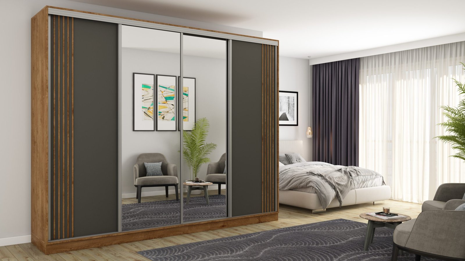 Ieškote funkcionalios spintos savo miegamajam ar mažam prieškambariui? Elegantiška ir moderni stumdoma spinta yra ne tik naudingas baldas, bet ir dekoratyvinis elementas jūsų namams! Atnaujinkite savo interjerą ir mėgaukitės modernia spinta, kurią galite laisvai pritaikyti pagal savo poreikius. Stumdoma spinta yra ergonomiško dizaino ir puikaus funkcionalumo derinys. Spinta buvo sukurta galvojant apie modernų ir minimalistinį interjerą. Jos rėmas pagamintas iš tvirtos, aukštos kokybės laminuotos plokštės, užtikrinančios stabilumą ir ilgaamžiškumą. Spintos spalvą galite priderinti prie savo interjero dizaino. Taip pat galite užsisakyti spintą su veidrodžiais, kurie vizualiai padidins kambarį. Spinta pagaminta iš aukščiausios kokybės, 18 mm storio, dvipusės laminuotos plokštės iš „Woodeco“ (anksčiau „Pfleiderer“). Visos dalys, įskaitant dugną iš grindų pusės, padengtos itin patvariu 0,8 mm storio PVC kraštu. Tai suteikia papildomą apsaugą nuo drėgmės valant grindis. Galinės sienelės pagamintos iš 3 mm storio, vienpusės laminuotos HDF plokštės (atitinkančios baldo korpuso spalvą). Metalinės drabužių pakabos. Nelygios grindys – problema? Spintos kojelės aprūpintos tvirtomis, reguliuojamomis slydimo … Aliuminio rankenos per visą durelių aukštį leidžia jas lengvai perkelti, nerizikuojant jų sulenkti. Buferiniai šepetėliai apsaugo nuo smūgių į spintelės šonus.