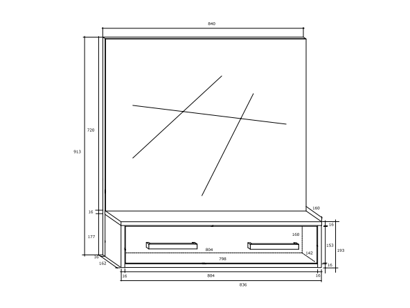 - Veidrodis (plotis/aukštis/gylis): 84 cm / 91 cm / 21 cm