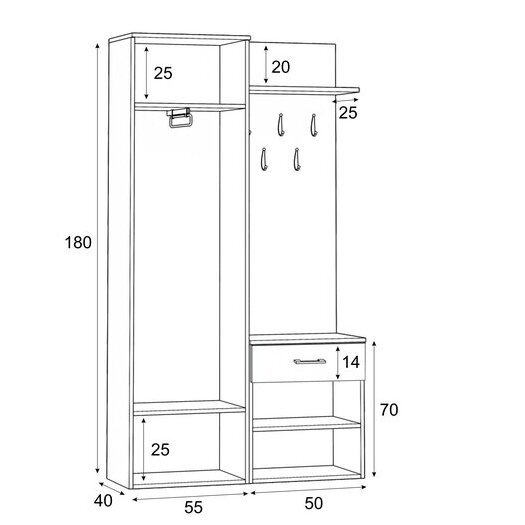 - • Išmatavimai: aukštis 180 cm/ plotis 105 cm/ ilgis 40 cm