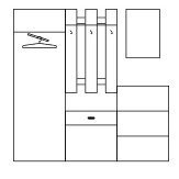 - Komplekto matmenys (gylis/ plotis/ aukštis): 41/204/180 cm