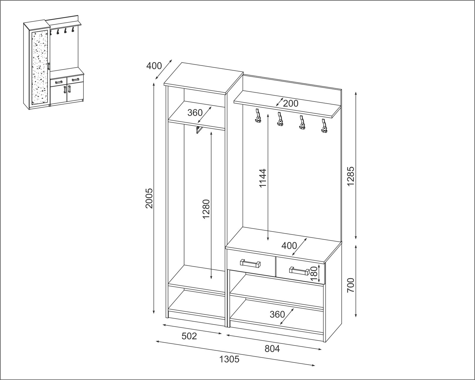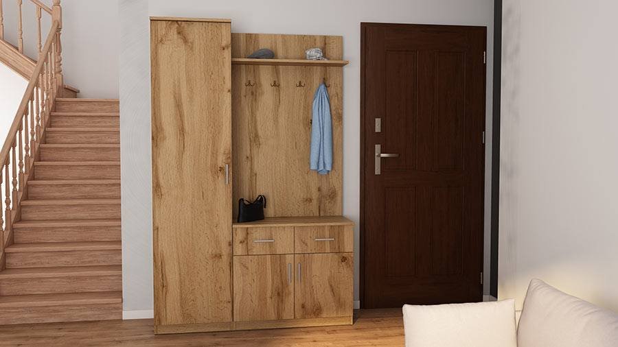 - su spinta, 2 stalčiais, 2 durelėmis ir drabužių kabykla;