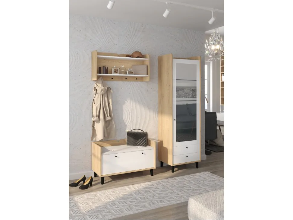 - Drabužių kabykla (plotis/aukštis/gylis): 90 cm / 45 cm / 25 cm