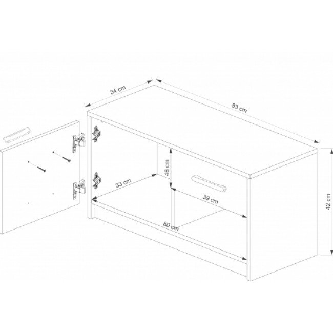 - Matmenys (plotis/aukštis/gylis): 83/42/34 cm