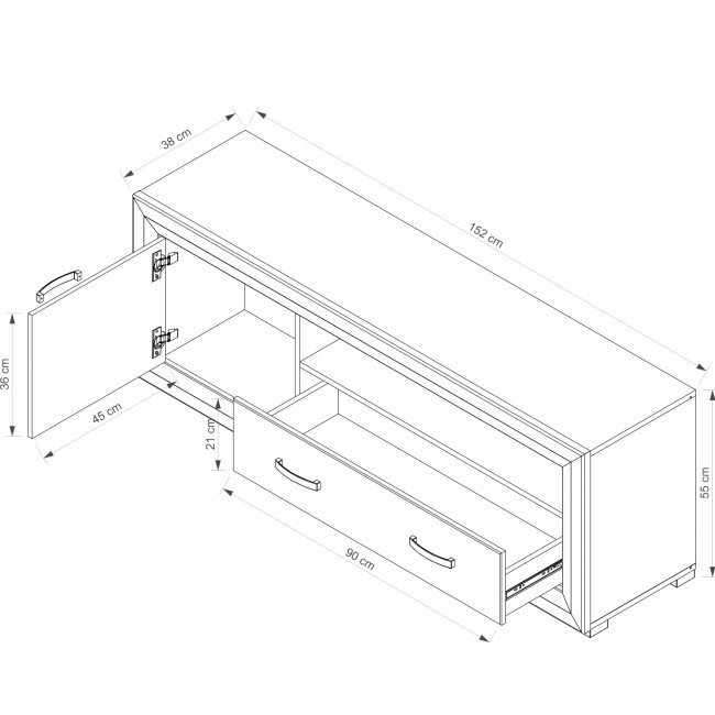 - Matmenys (plotis/aukštis/gylis): 151,5/55/38 cm