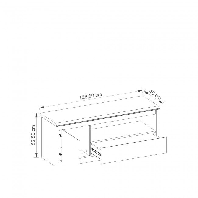 - Matmenys (plotis/aukštis/gylis): 126,5/52,5/40 cm