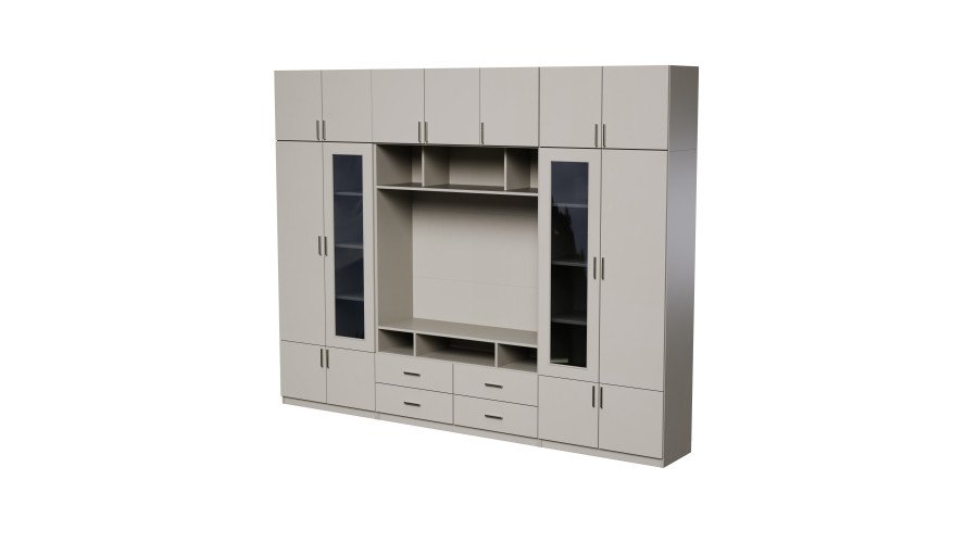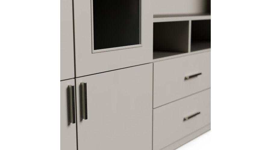 Ieškote baldo, kuris tilptų viską ir vis tiek atrodytų puikiai? Ši sekcija yra puikus pasirinkimas tiems, kurie vertina modernų stilių, funkcionalumą ir puikiai organizuotą erdvę. Įspūdingo 303 cm pločio ir 240 cm aukščio sekcija suteikia daug vietos daiktams susidėti, neužgriozdindama erdvės. Tai idealus sprendimas tiek didelėms, tiek vidutinio dydžio svetainėms. Apgalvotas daiktų laikymas.Daugiapakopės atviros lentynos puikiai tinka knygoms, dekoracijoms, kolekcionuojamiems daiktams, augalams ar nuotraukų rėmeliams. Dėl įvairių lentynų dydžių jas galite lengvai pritaikyti prie savo turinio, sukurdami namų bibliotekos ar elegantiškos ekspozicijos įvaizdį. Televizoriaus skyriuje patogiai pasidėkite televizorių, konsolę ir garso įrangą, o papildomos nišos ir lentynos padeda paslėpti laidus ir priedus.Įvairūs moduliai leidžia laikyti viską – nuo dokumentų ir žaidimų iki sezoninių dekoracijų – visada ranka pasiekiamoje vietoje.Baldas pagamintas iš aukščiausios kokybės, 18 mm storio, dvipusės laminuotos „Woodeco“ (anksčiau „Pfleiderer“) plokštės. Visi elementai, įskaitant ir apatinę pusę iš grindų pusės, yra klijuoti itin patvariu 0,8 mm storio PVC kraštu. Tai suteikia papildomą apsaugą nuo drėgmės valant grindis.