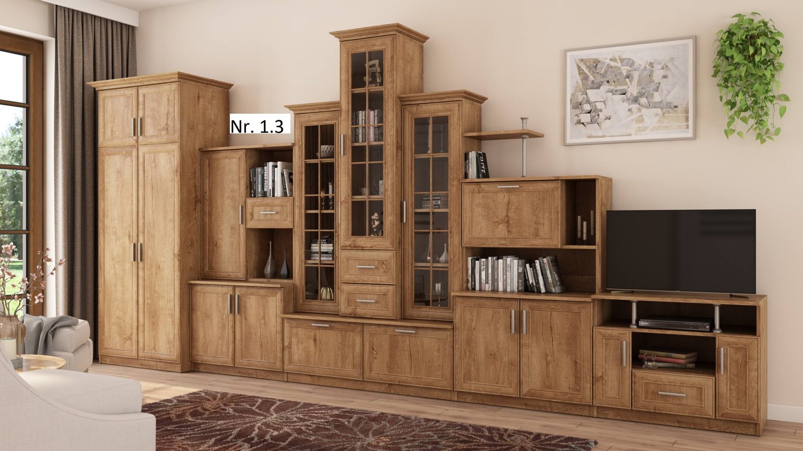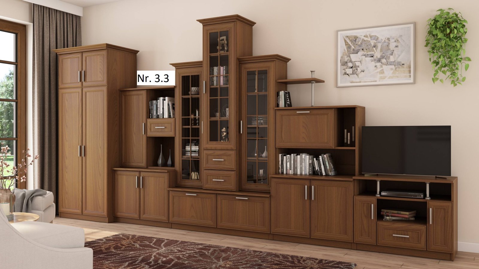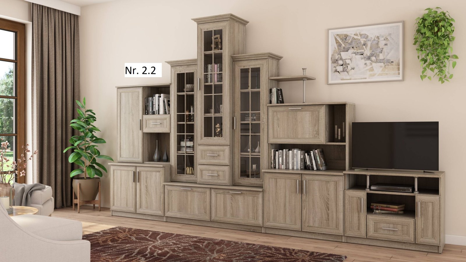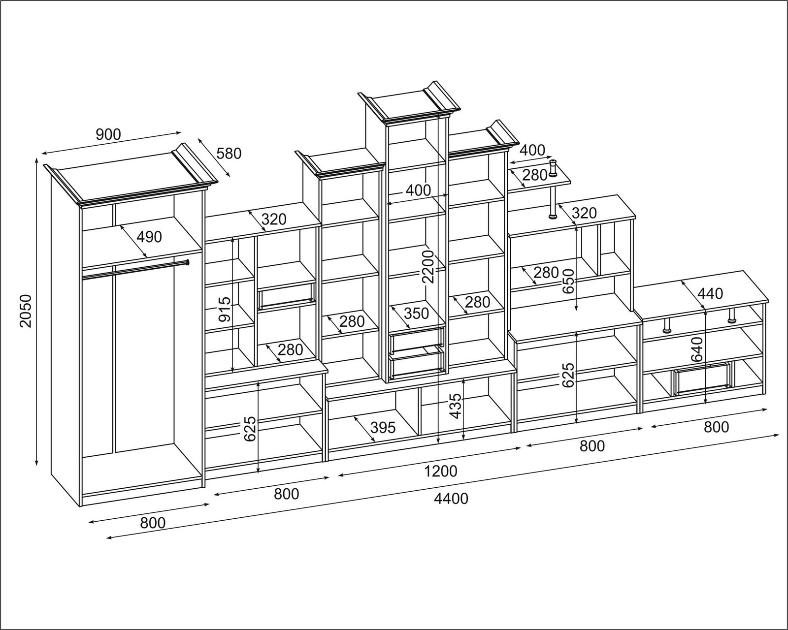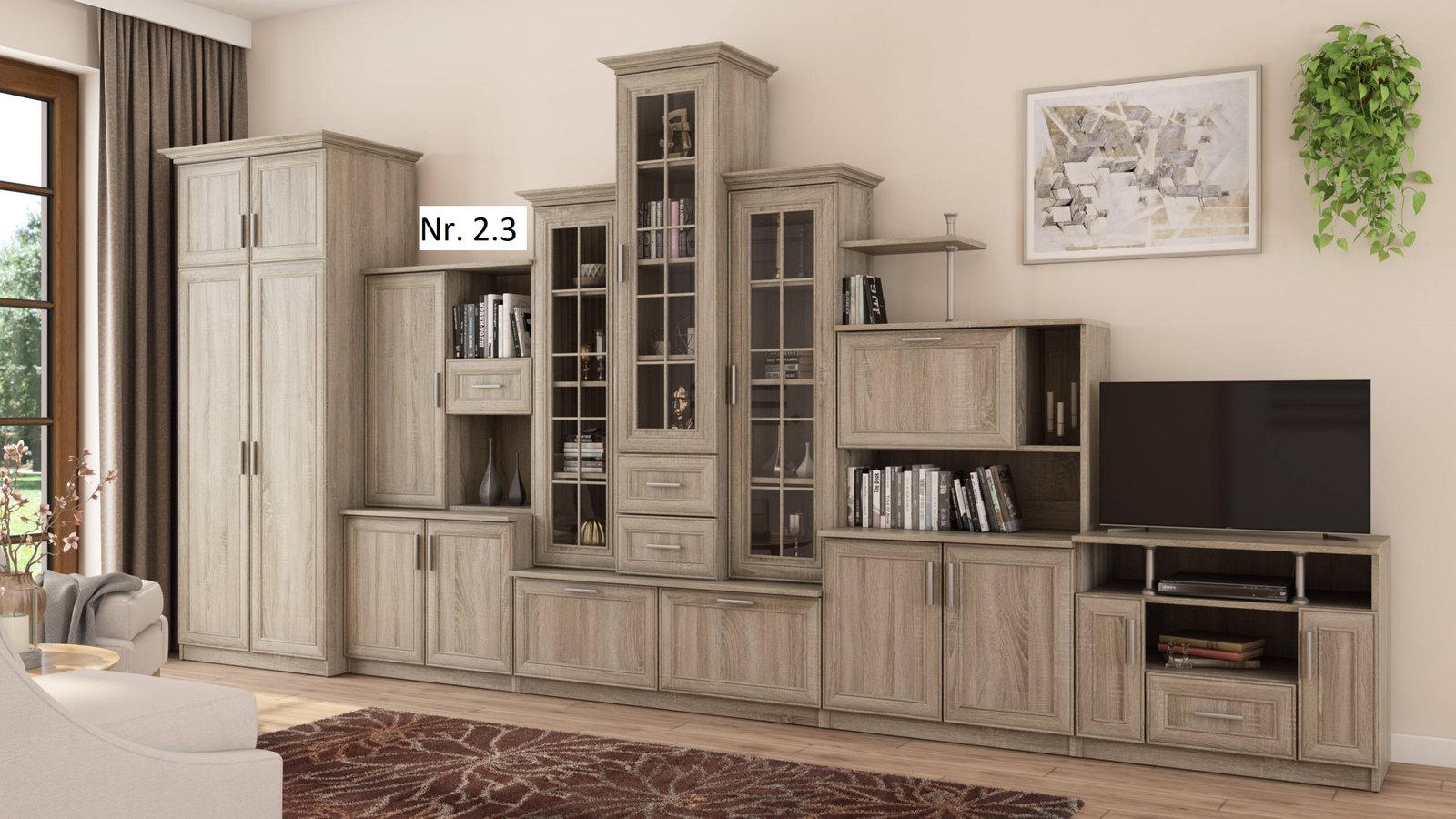 - galima įsigyti su dviejų durų spinta ir su RTV spintele matmenys: 440/207/44 – kaina –1060 Eur