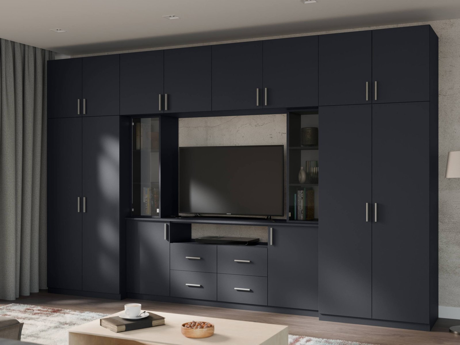 Dėl elegantiškų priestatų su patamsintomis stiklo durimis, išnaudosite erdvę iki pat lubų. RTV dalis yra ne tik praktiška vieta garso ir vaizdo įrangai, bet ir skoninga vitrina jūsų mėgstamiems daiktams. Stiklinimas suteikia sieniniam elementui lengvumo ir elegancijos. Ši spinta yra funkcionalumo ir estetikos derinys. Jos paprastas, modernus dizainas puikiai tiks bet kokiame interjere. Ši spinta – tai investicija į Jūsų namų komfortą ir estetiką, kurios dėka įgausite erdvią ir sutvarkytą erdvę, taip pat vietos viskam, ko jums reikia.