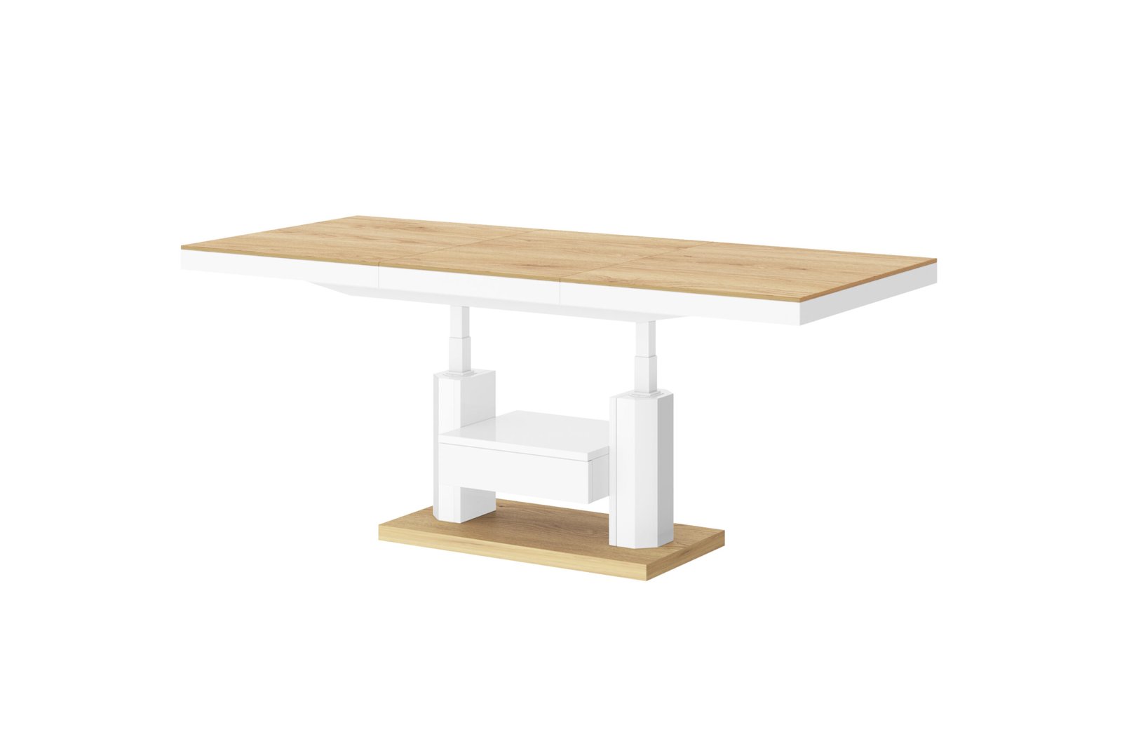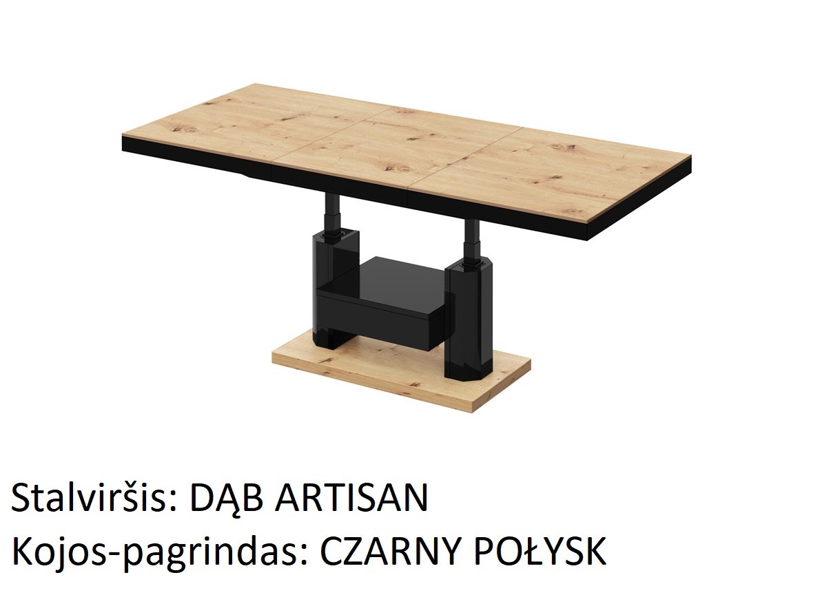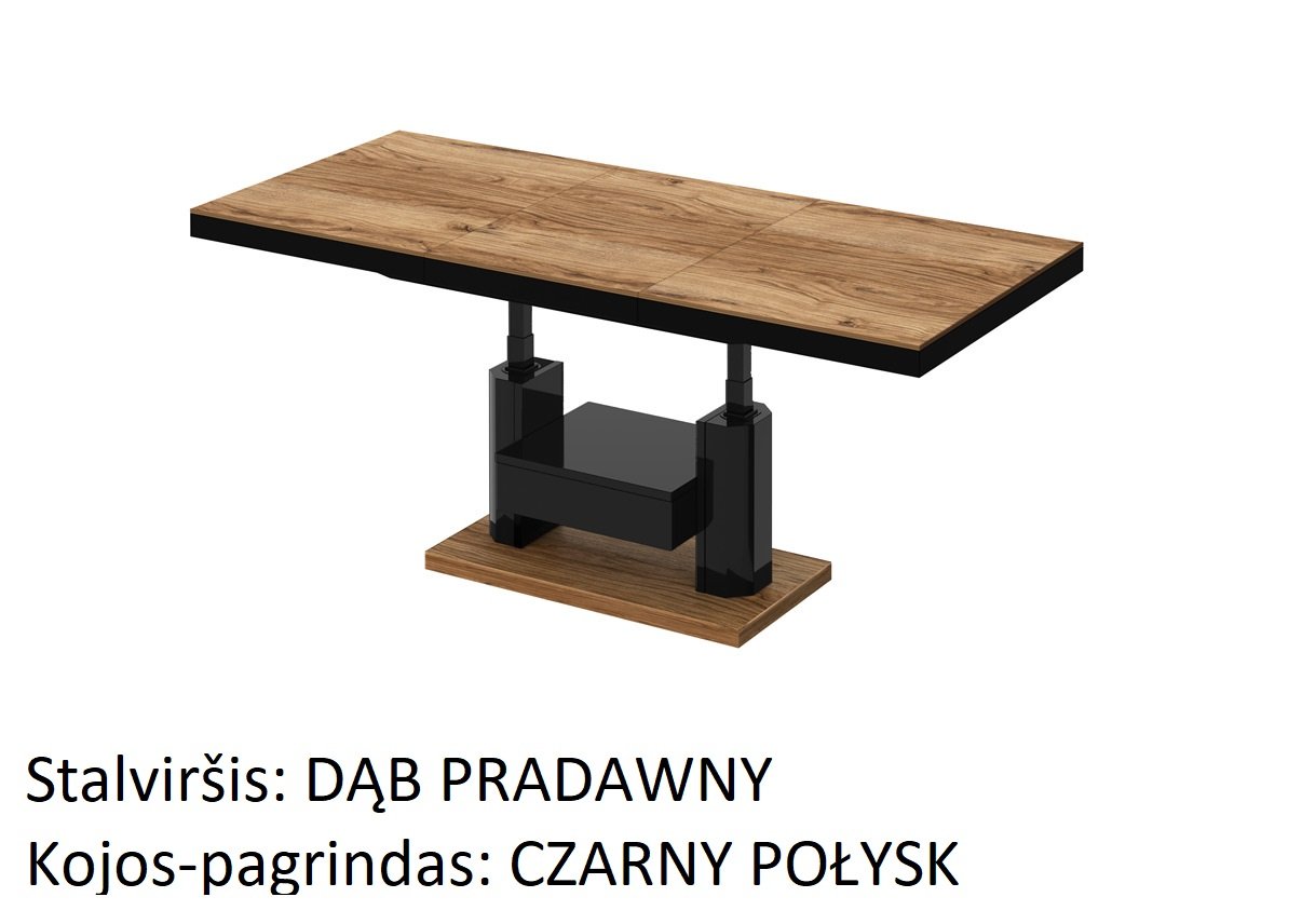 Naujiena mūsų pasiūlyme. Šis kavos staliukas yra idealus pasirinkimas ieškantiems funkcionalaus baldo. Dėl galimybės prailginti ir pakelti stalviršį, staliuką galime paversti stalu vos keliais paprastais žingsniais. Galima prailginti nuo 120 iki 170 cm. Aukštis laisvai reguliuojamas nuo 56 iki 76 cm. Visas staliukas pagamintas iš aukščiausios kokybės medžiagų. Pagrindinė medžiaga čia yra MDF plokštė, padengta blizgiu akriliniu kilimėliu. Galima įsigyti kelių madingų spalvų versijų.