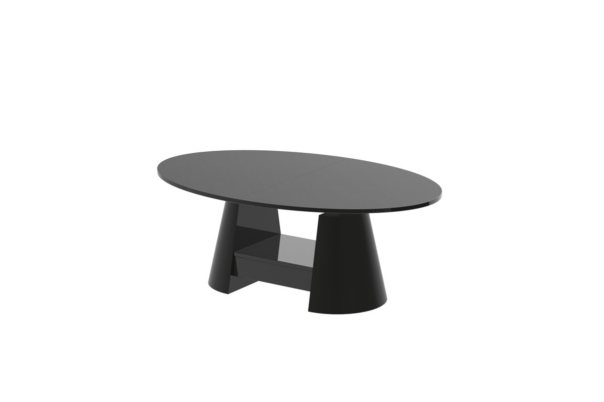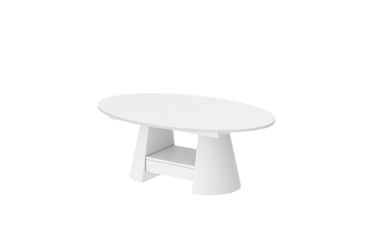 Šis kavos stalas sukurtas moderniam interjerui, kuriame svarbiausia yra stilius ir praktiškumas. Ovali forma ir aukštos kokybės apdaila suteikia subtilios prabangos, pabrėžiant unikalų baldo charakterį. Kavos stalas išsiskiria unikaliu pagrindo dizainu. Jį sudaro dvi dekoratyvinės kolonos su subtilia, briaunota struktūra, suteikiančia baldui tekstūros ir gylio bei užtikrinančios stabilų atramą stalviršiui. Tarp kolonų yra praktiškas stalčius ir lentyna, puikiai tinkantys laikyti smulkius daiktus, tokius kaip žurnalai, knygos ar aksesuarai. Tačiau svarbiausia,  yra pilnai funkcionalus kavos staliukas. Dėl išplėtimo ir pakėlimo funkcijos jis greitai transformuojasi iš elegantiško kavos staliuko į pilno dydžio stalą, puikiai tinkantį didesniems susitikimams ar valgymams. Kavos stalo aukštį galima lengvai ir greitai reguliuoti nuo 55 iki 75 cm, naudojant pneumatinius keltuvus.