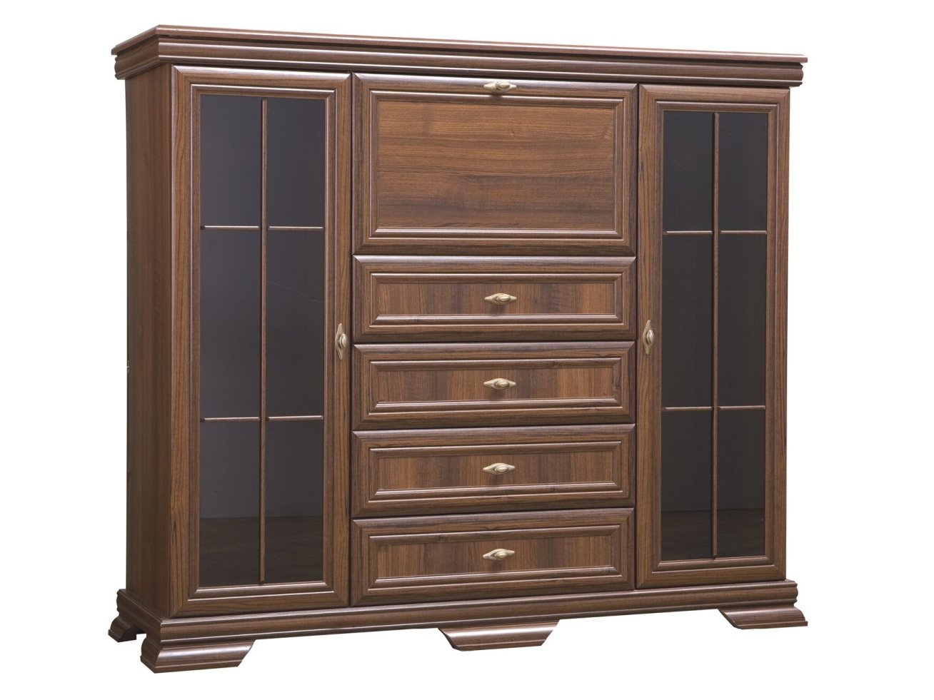 • Komoda su keturiais praktiškais stalčiais, lentynomis už stiklinių durų ir baru.