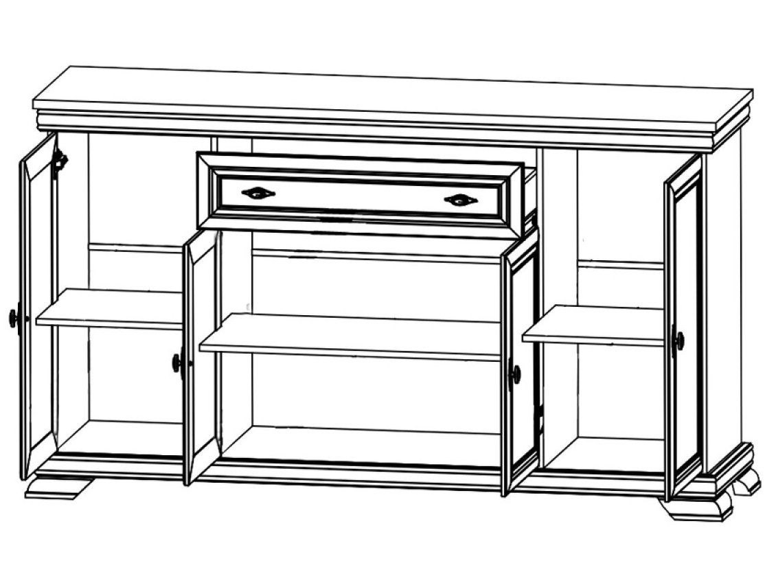 • Komoda su vienu stalčiumi ir trimis spintelėmis.