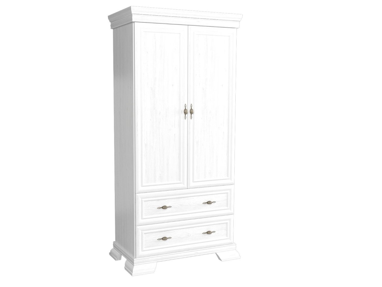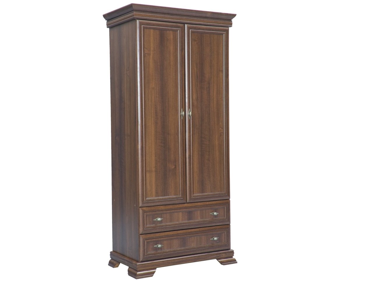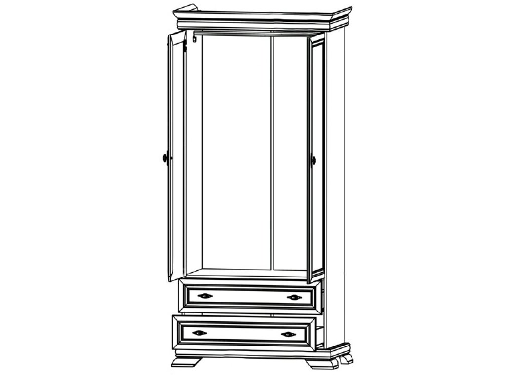 • Dviejų durų spinta su dviem stalčiais ir drabužių kabykla.