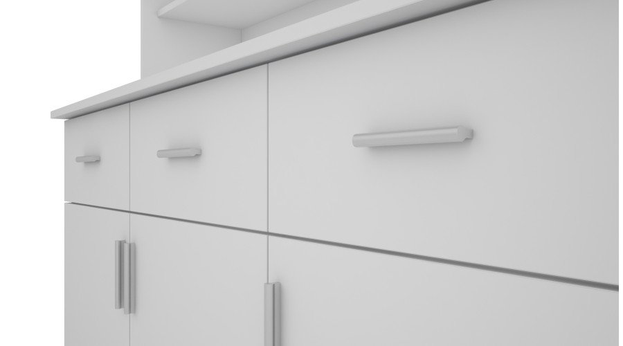 Galinės sienelės pagamintos iš 3 mm storio HDF plokštės, laminuotos iš vienos pusės (baldo korpuso spalvos).