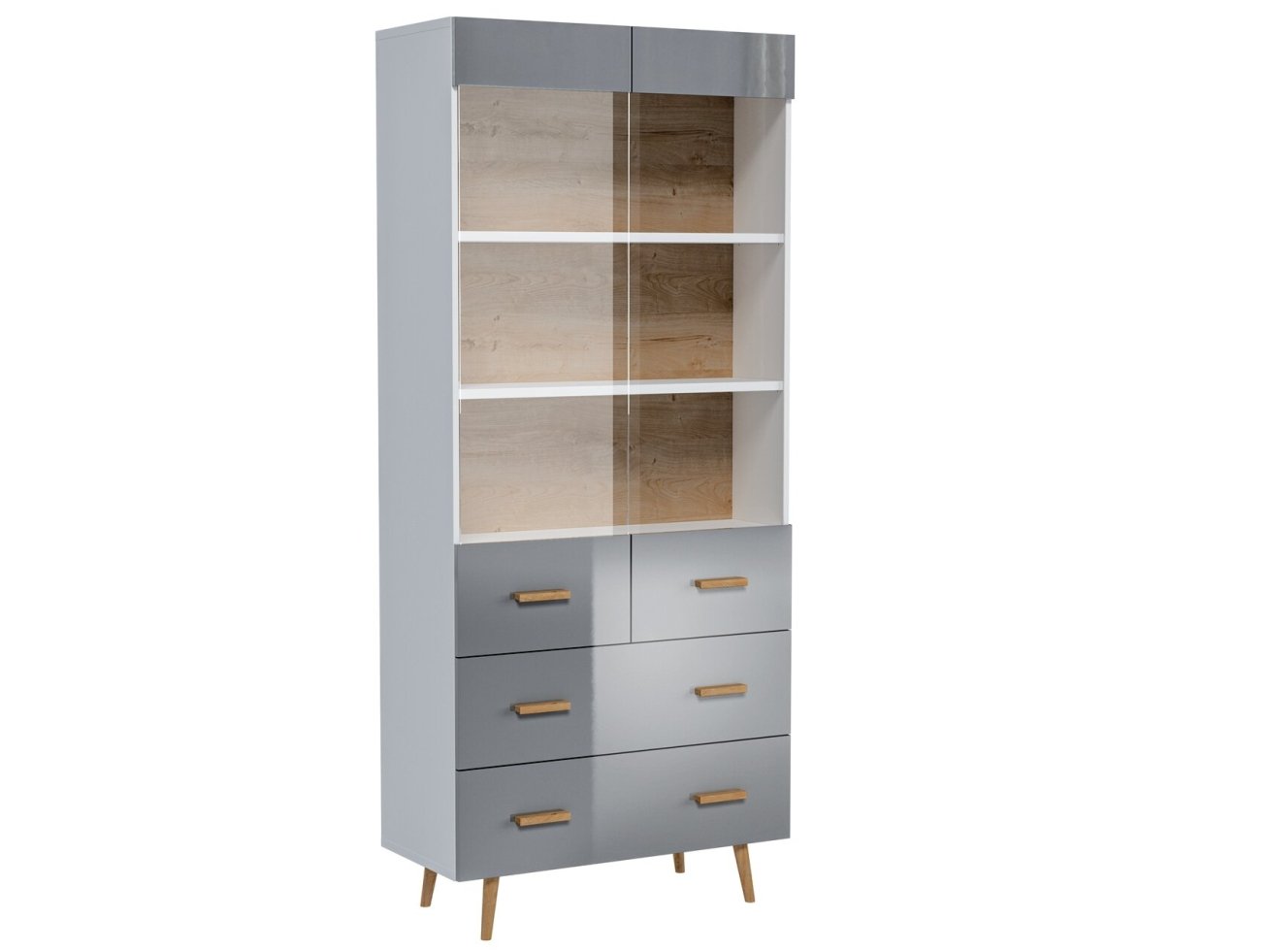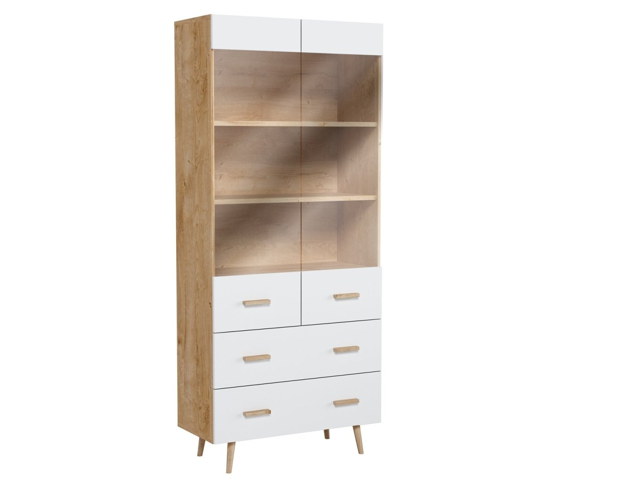 - Vitrininė spinta su trimis stalčiais, dvi lentynos už stiklo. Galimybė įsigyti LED apšvietimą.