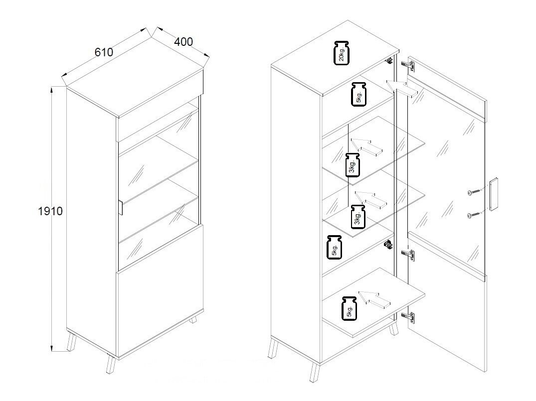• Bendri išmatavimai (plotis/aukštis/gylis): 61 cm / 191 cm / 40 cm