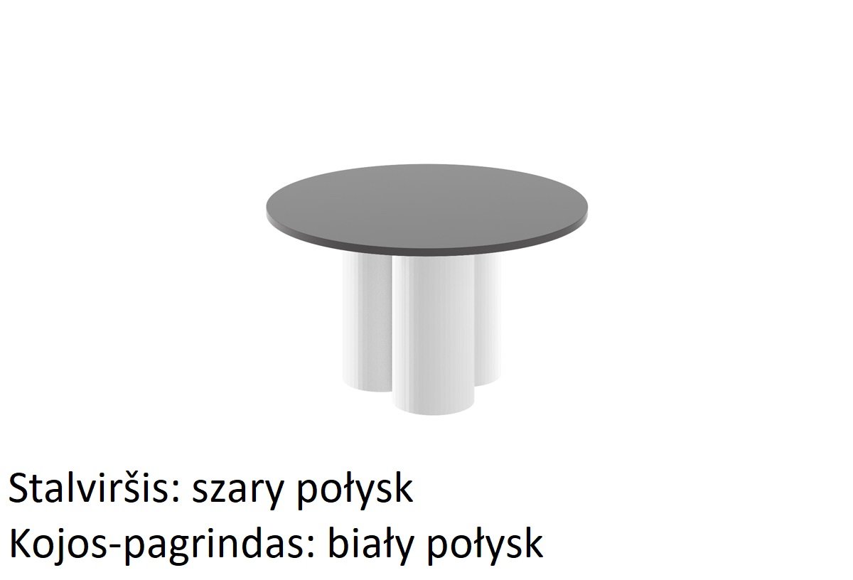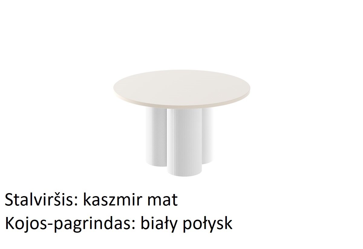Apvalus kavos staliukas  yra itin elegantiškas dizainas. Jis išsiskiria moderniu, minimalistiniu dizainu. Apvalus stalviršis, madingiausių sezono spalvų ir raštų, stovi ant trijų kolonos formos kojelių. Stalo stilius puikiai dera prie naujausių baldų dizaino ir interjero architektūros tendencijų, sukuriant nuostabius interjerus.