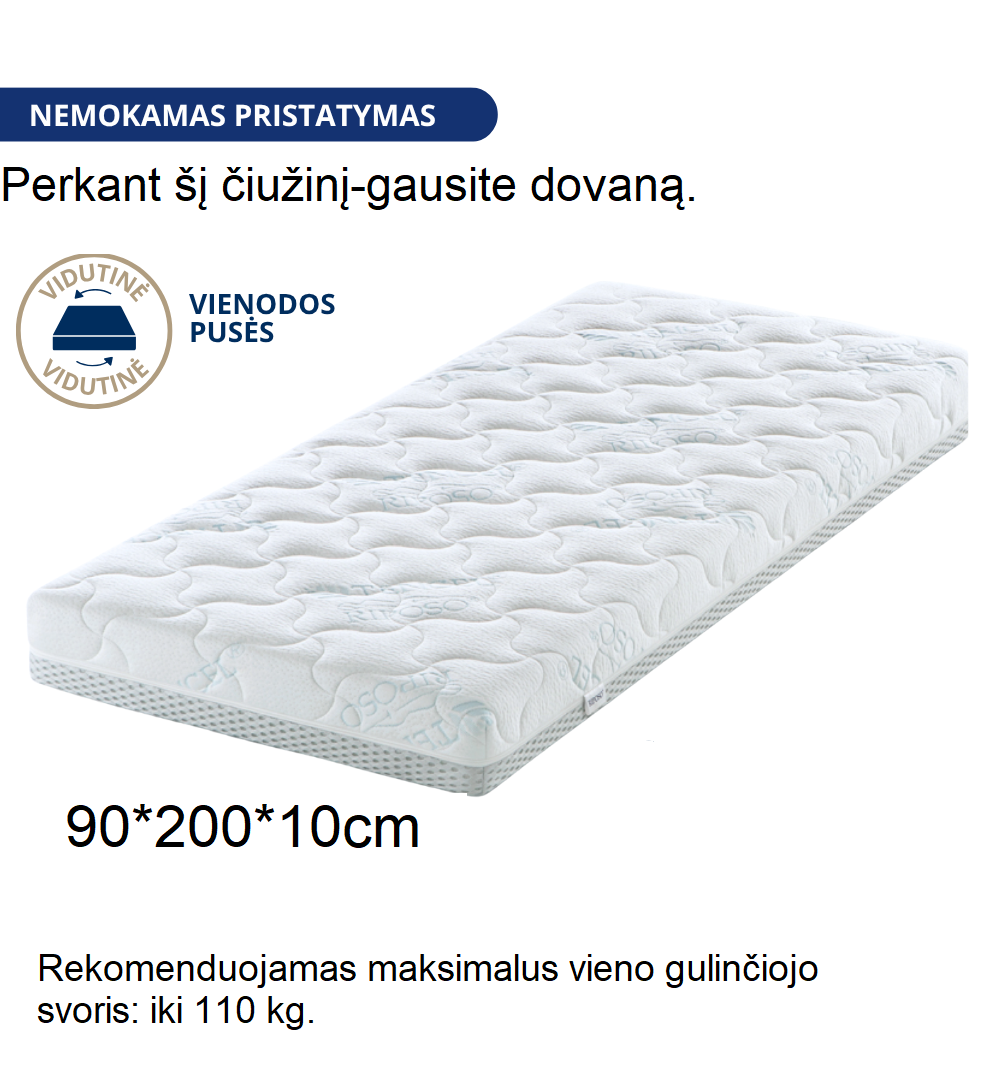- Galime pasiūlyti kokybišką čiužinį : 90*200*10cm –172 Eur įkelta nuoroda: