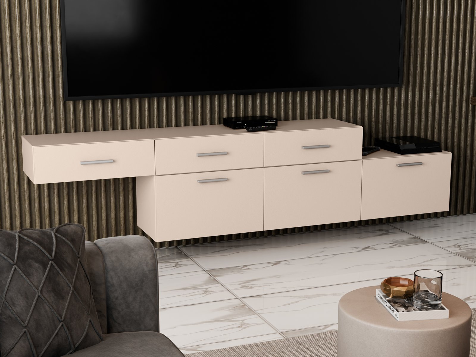 Ši modulinė komoda – tai modernus baldas, atitinkantis šiuolaikinių vartotojų, ieškančių stiliaus ir funkcionalumo derinio, lūkesčius. Sukurta atsižvelgiant į besikeičiančius namų savininkų poreikius, ji puikiai tiks įvairiose erdvėse – nuo jaukaus miegamojo iki elegantiškos svetainės, kūrybingo vaikų kambario ir net minimalistinio namų biuro. Vienas didžiausių komodos privalumų – lanksčios tvirtinimo galimybės. Ji gali stovėti tiesiai ant grindų, paremta pridedamomis moderniomis, žemomis kojelėmis, kurios suteikia jai lengvumo pojūtį ir užtikrina stabilumą. Arba, šio išmanaus dizaino, galite ją pakabinti ant sienos, sukurdami elegantišką, „plaukiojančio“ efektą. Modulinis dizainas suteikia visišką laisvę išdėstant stalčius ir dureles. Galite juos stumdyti į kairę ir į dešinę, keisti vietomis ir perkelti aukštyn ir žemyn, kurdami įvairias kompozicijas. Jei po kurio laiko nuspręsite, kad išdėstymą reikia pakeisti, tereikia kelių akimirkų, kad pertvarkytumėte komodą pagal savo naują idėją. Komoda ne tik puikiai atrodo, bet ir puikiai atlieka savo paskirtį. Jos viduje tilps viskas, ką norite turėti po ranka, bet nebūtinai gerai matomoje vietoje. Platus stalviršis suteikia puikią erdvę nuotraukoms, dekoracijoms, mėgstamoms knygoms ar kelionių suvenyrams eksponuoti. Komoda buvo suprojektuota ir pagaminta Lenkijoje, o galimybė užsisakyti ją bet kokios spalvų gamos leidžia lengvai priderinti prie bet kokio interjero. Baldai pagaminti iš aukščiausios kokybės, 18 mm storio, dvipusės laminuotos plokštės iš „Woodeco“ (anksčiau „Pfleiderer“). Visi elementai apklijuoti itin patvariu 0,8 mm storio PVC apvadu, kuris yra atsparus drėgmei ir nedideliems smūgiams.Galinės sienelės pagamintos iš 3 mm storio, vienpusės laminuotos HDF plokštės (atitinkančios baldo korpuso spalvą). Svarbi informacija: Komplekte yra visas priedų rinkinys su aiškiomis surinkimo instrukcijomis. Baldai parduodami supakuoti. Papildomai: Pilno ištraukimo stalčiai su savaiminio užsidarymo mechanizmais ir švelniai užsidarančiomis durelių vyriais! Spalva: piasek pustyni
