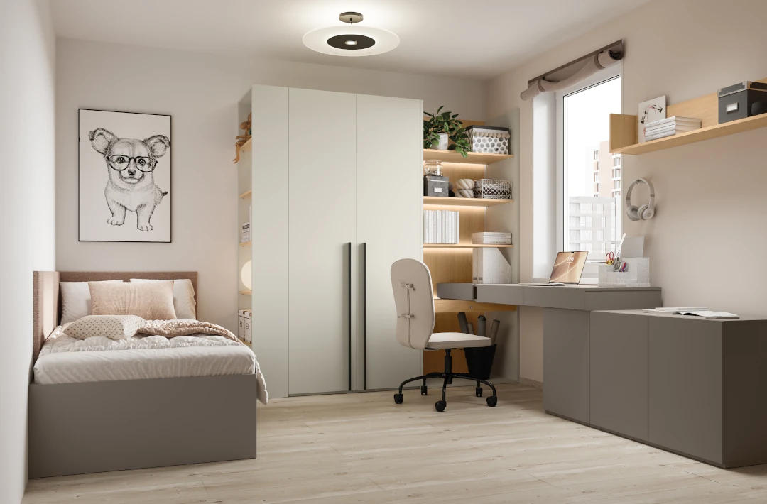 Moderni paauglio kambario komoda apjungia modernaus dizaino estetiką su praktišku, gerai apgalvotu interjero išplanavimu. Idealiai tinka paaugliams, kuriems reikia vietos ne tik drabužiams, bet ir knygoms, mokyklinėms prekėms bei pomėgiams. Universalus stilius, įkvėptas dabartinių tendencijų – tokių kaip skandinaviškas ir industrinis – leidžia lengvai papildyti bet kurio paauglio kambarį.