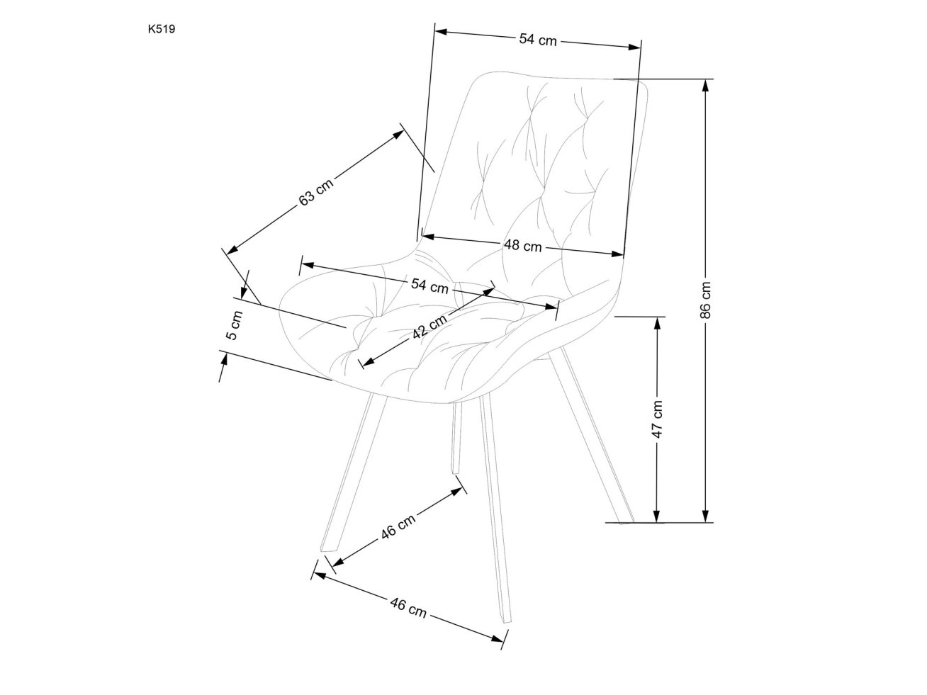 - Bendri išmatavimai (Plotis/Gylis/Aukštis): 54 cm / 63 cm / 86 cm